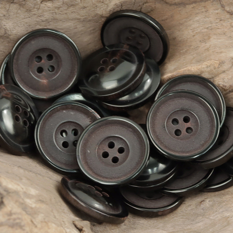 25mm Runde 4-huls Vintage Matte Røde Naturlige Sorte Hornknapper 10 stk