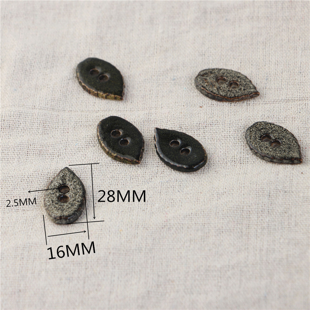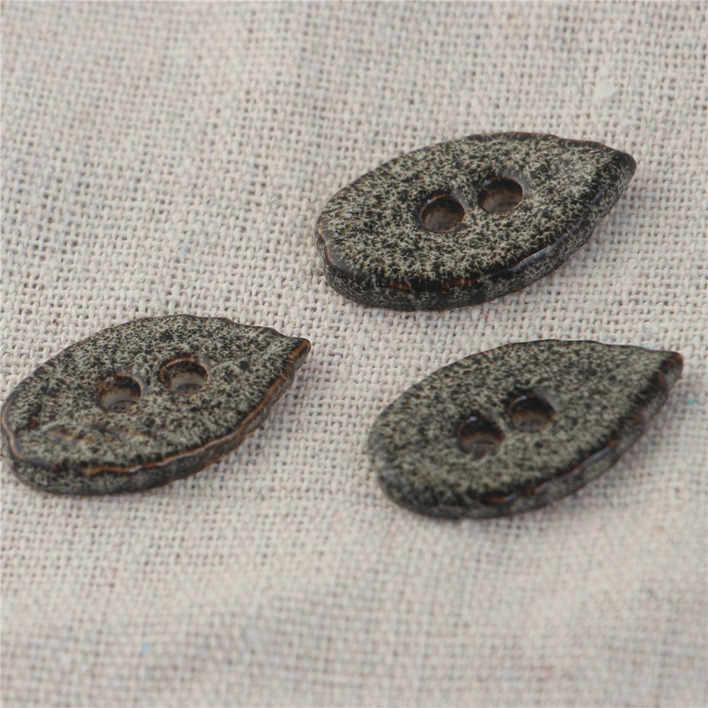 28mm bladformede 2-huls keramiske håndlavede knapper 5 stk.