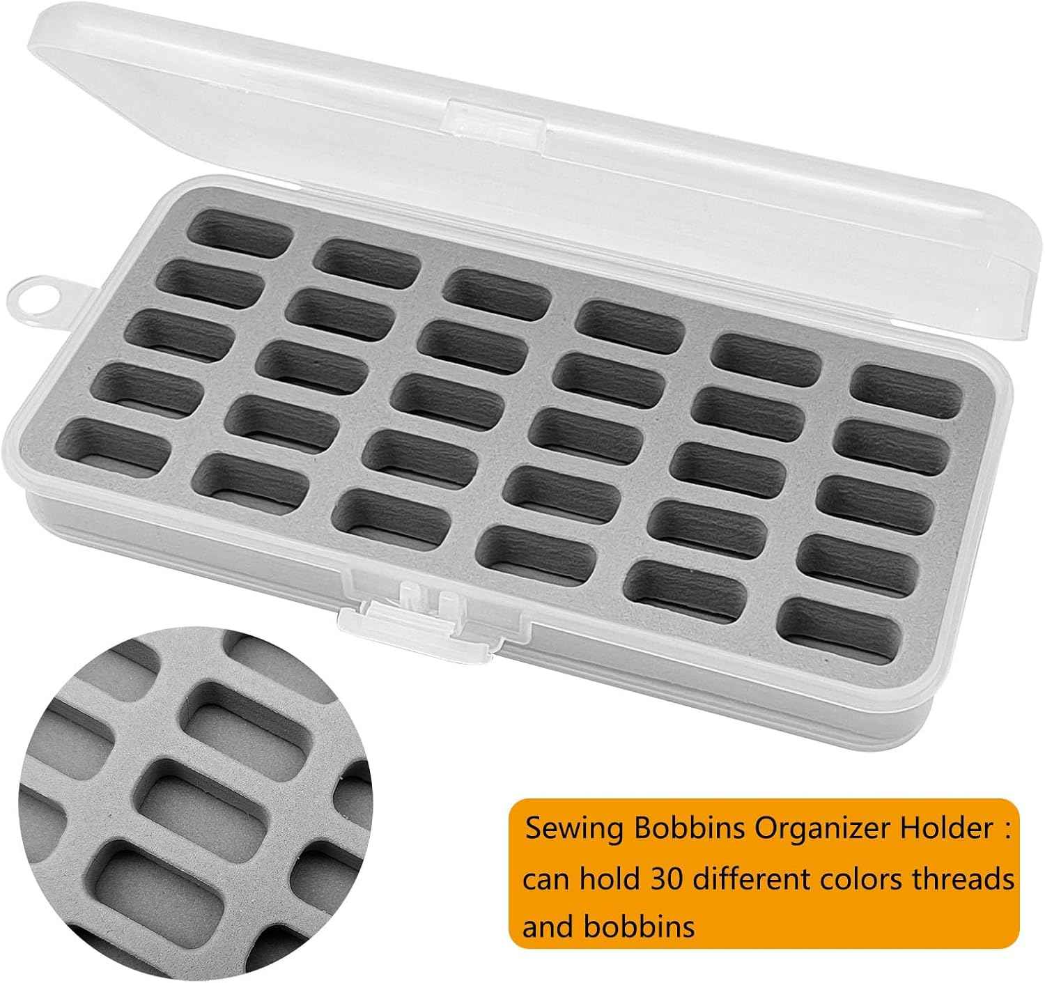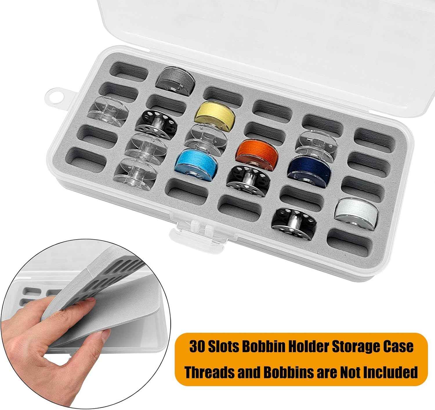 Perfekt til organisering af spolerne: Tilpasset formstørrelse passer spolerne tæt og perfekt. Ingen spoler vikler sig ud og ruller rundt. Ingen tråde der er sammenfiltrede. Hold hele dit spolesæt på et sikkert sted.