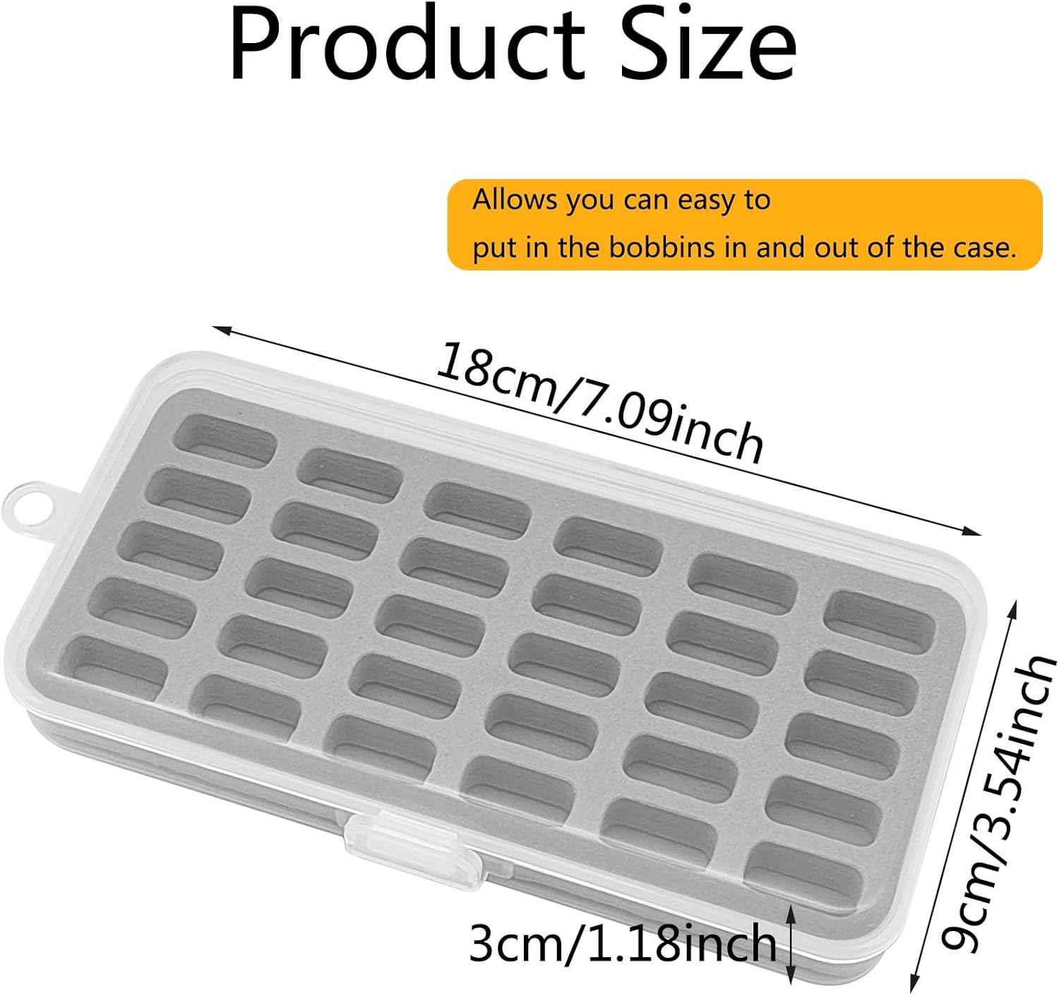 Letvægts & kompakt spoleboks: Ekstern størrelse: 7.09'' X 1.18'' X 3.54'''' tommer, Lille hul på toppen gør det nemt for dig at hænge den på væggen, bærbart design kan også puttes i håndtasken, kufferten. Super praktisk til at tage dit syspolesæt med overalt. Bedste gavevalg til din pige, kone.