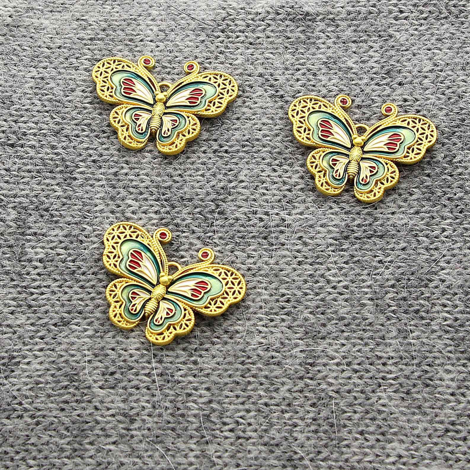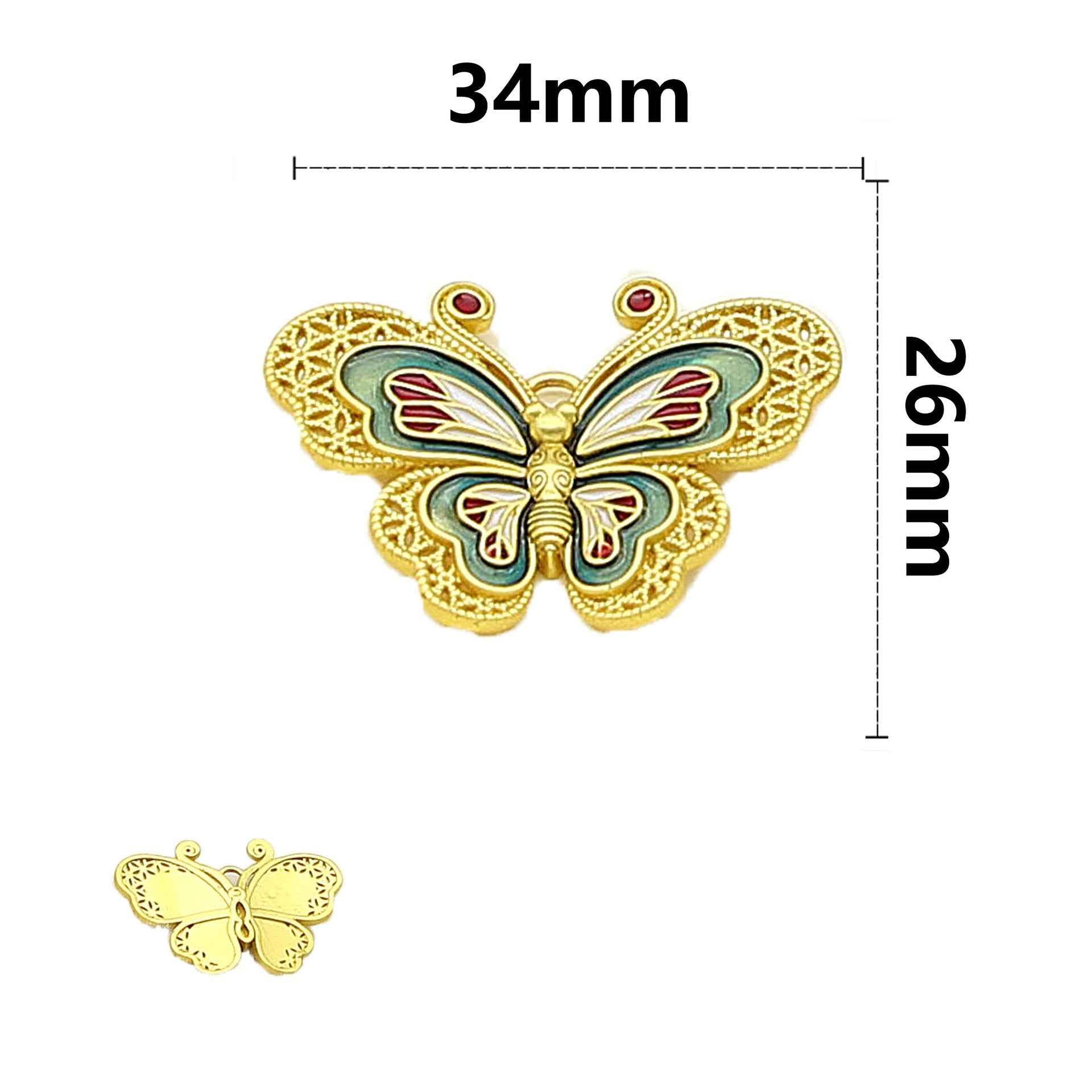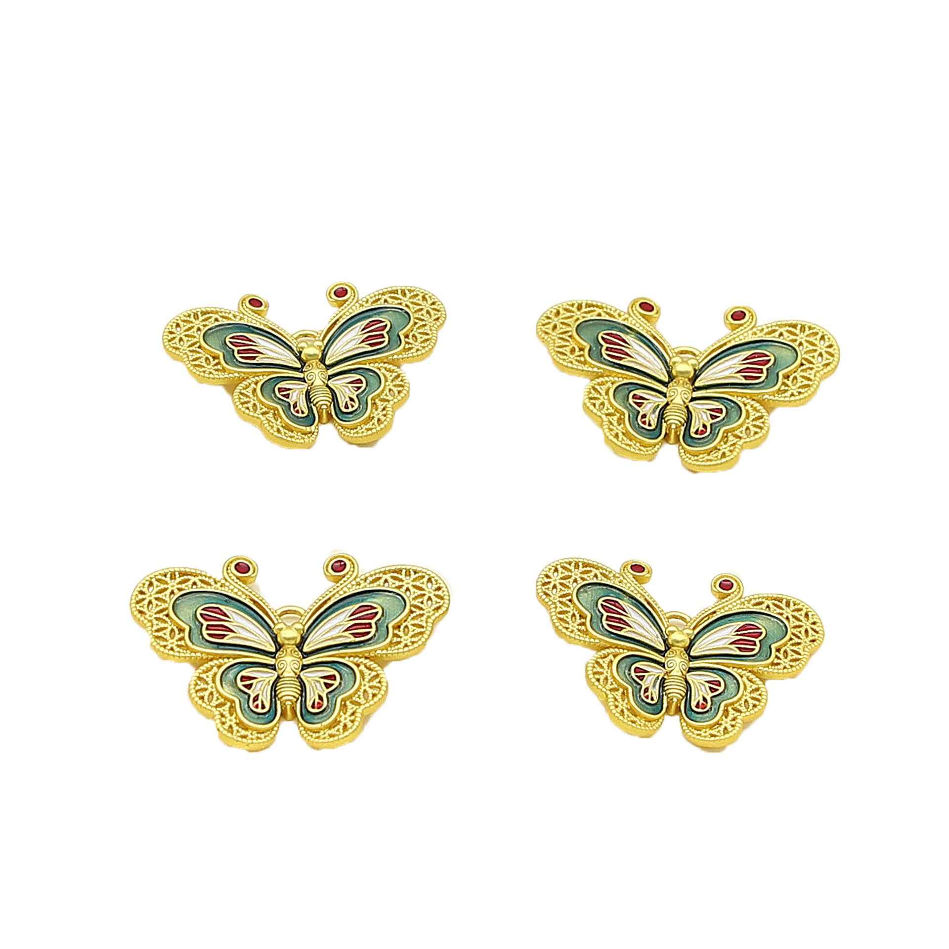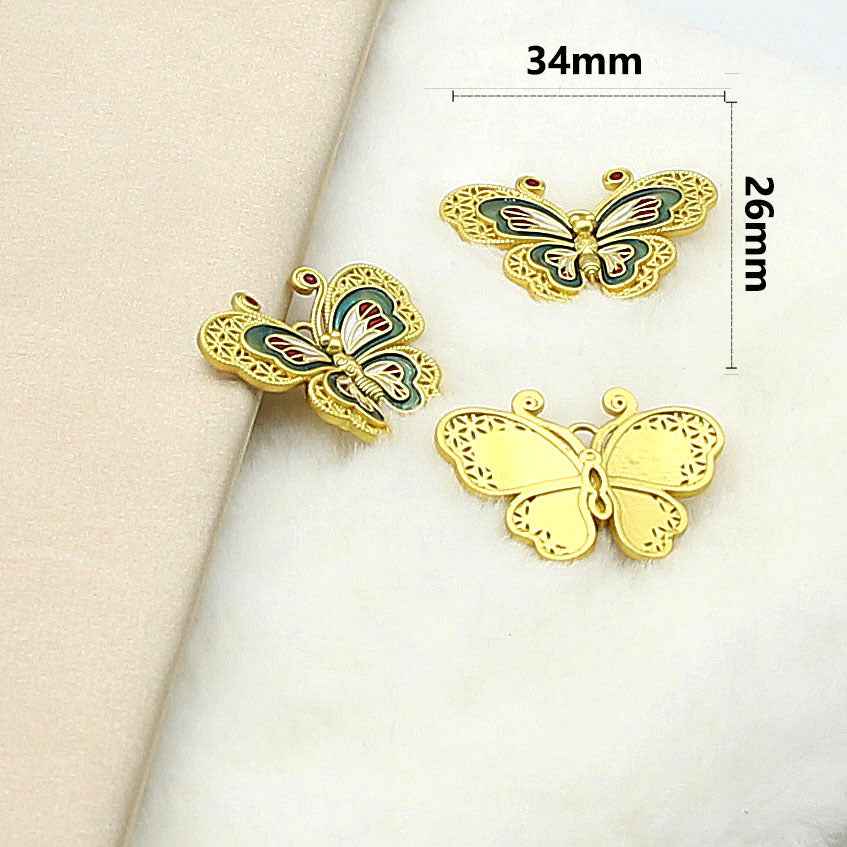 34X26MM Kinesisk Stil Sommerfuglformede Massiv Kobber Dekorative Knapper