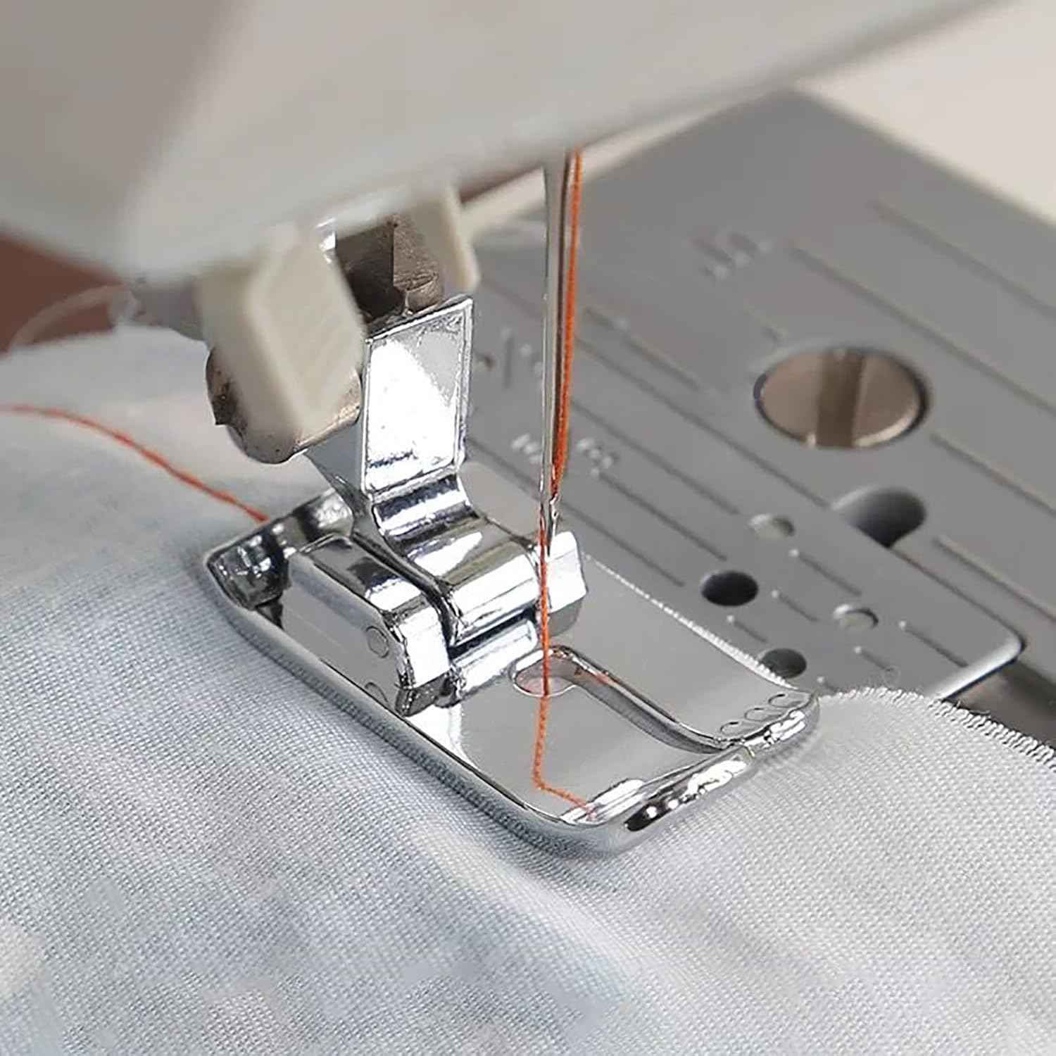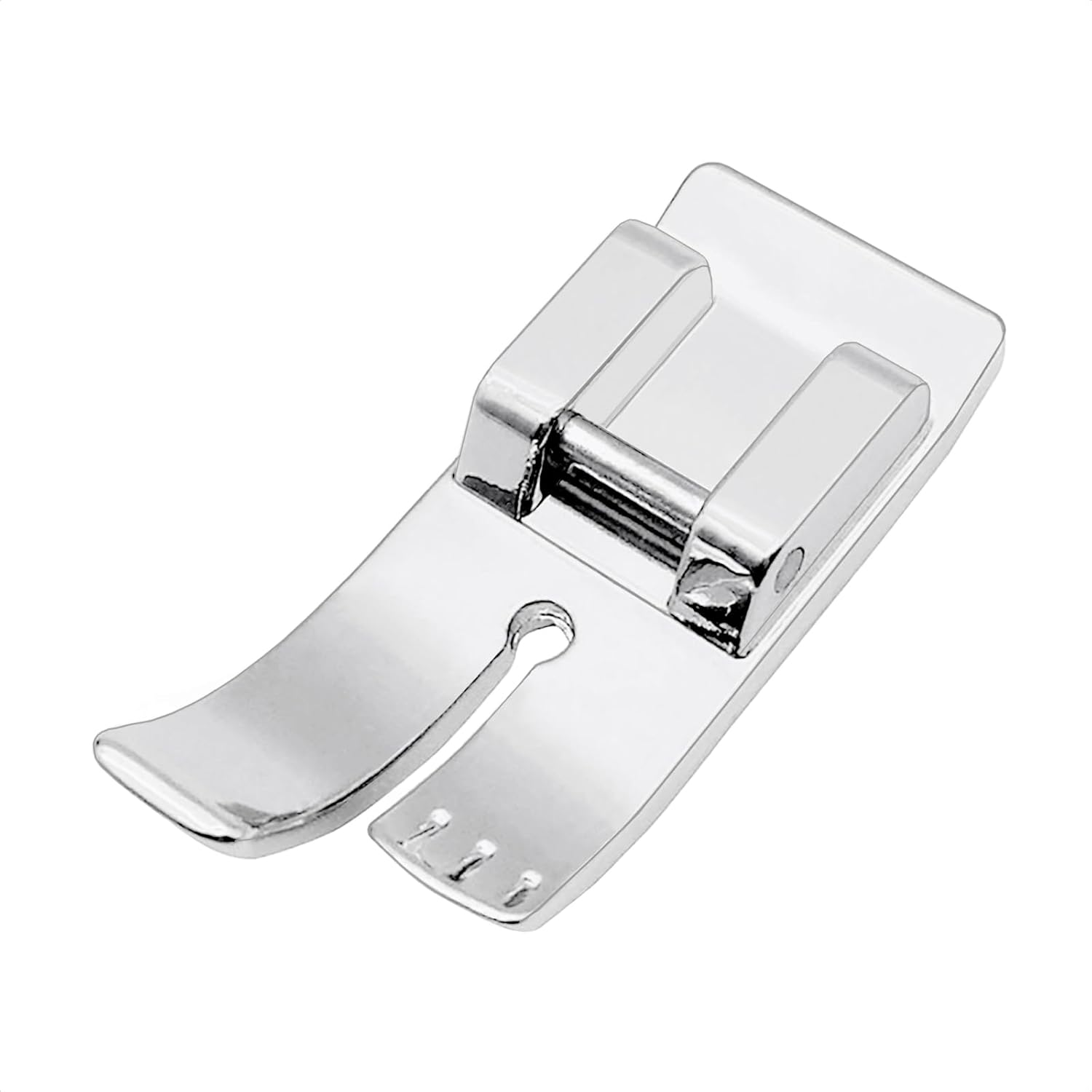 Har du oplevet rynkning og sprangne sting på lette stoffer? Den flade underside og det lille nåleindgangshul på denne fod er designet til at hjælpe med at løse dette problem.