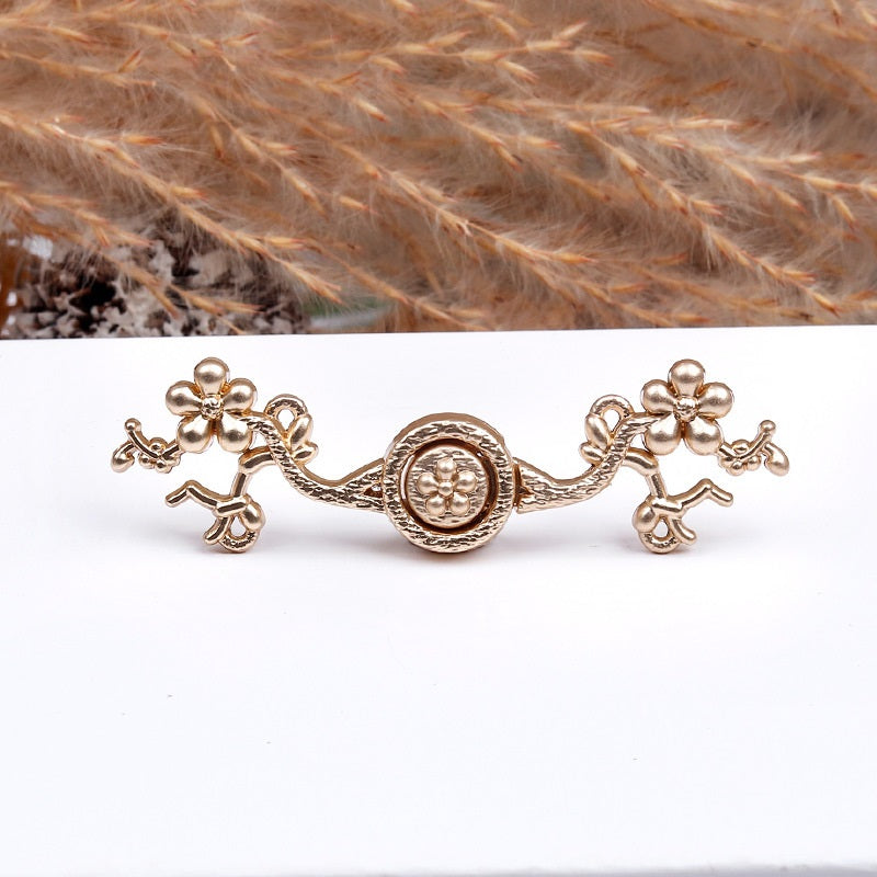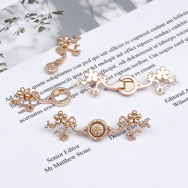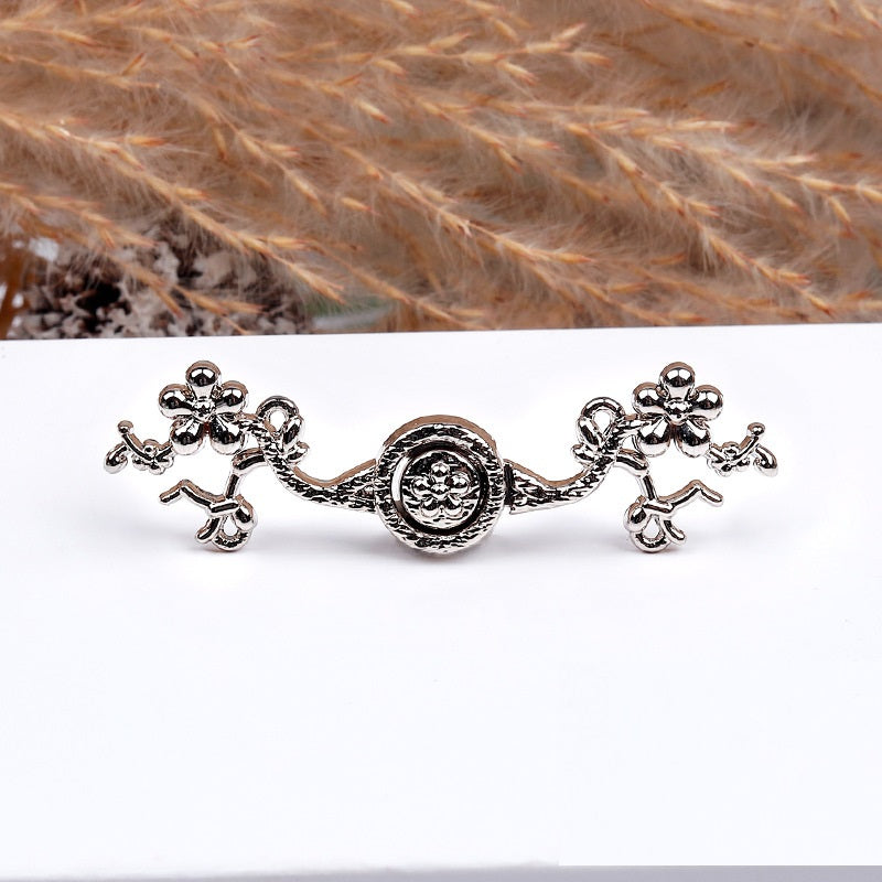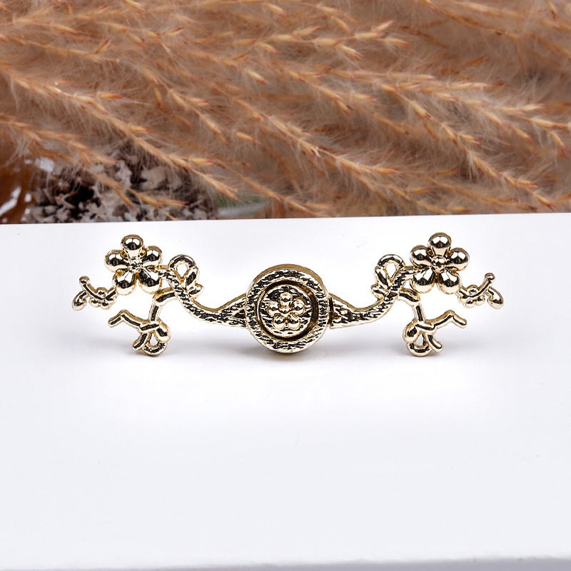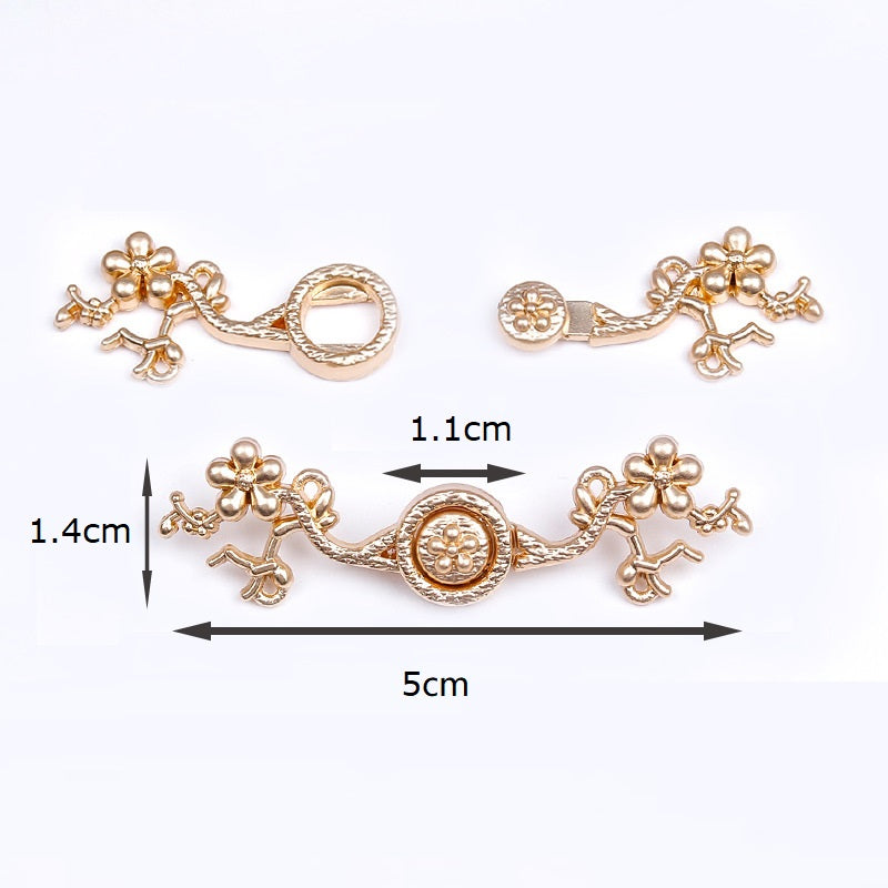 Disse 5cm metal frøknapper er en smuk repræsentation af kinesisk traditionel æstetik. Knapperne er designet i form af delikate blommeblomster, et symbol på modstandsdygtighed og elegance i kinesisk kultur. Fremstillet med en kombination af guld- og sølvtone, tilbyder de et luksuriøst og iøjnefaldende udseende. Den vintage finish tilføjer en følelse af historie og charme, hvilket gør dem perfekte til traditionelt kinesisk tøj som cheongsams eller Hanfu. Metallet er af høj kvalitet, hvilket sikrer holdbarhed og en fin tekstur. De er ikke kun funktionelle lukninger, men også dekorative elementer, der kan forbedre det samlede udseende af ethvert beklædningsstykke. Uanset om det er til en formel lejlighed eller en kulturel begivenhed, vil disse blommeblomstknapper bringe et unikt og sofistikeret præg, der giver bæreren mulighed for at vise deres påskønnelse for kinesisk arv og stil.