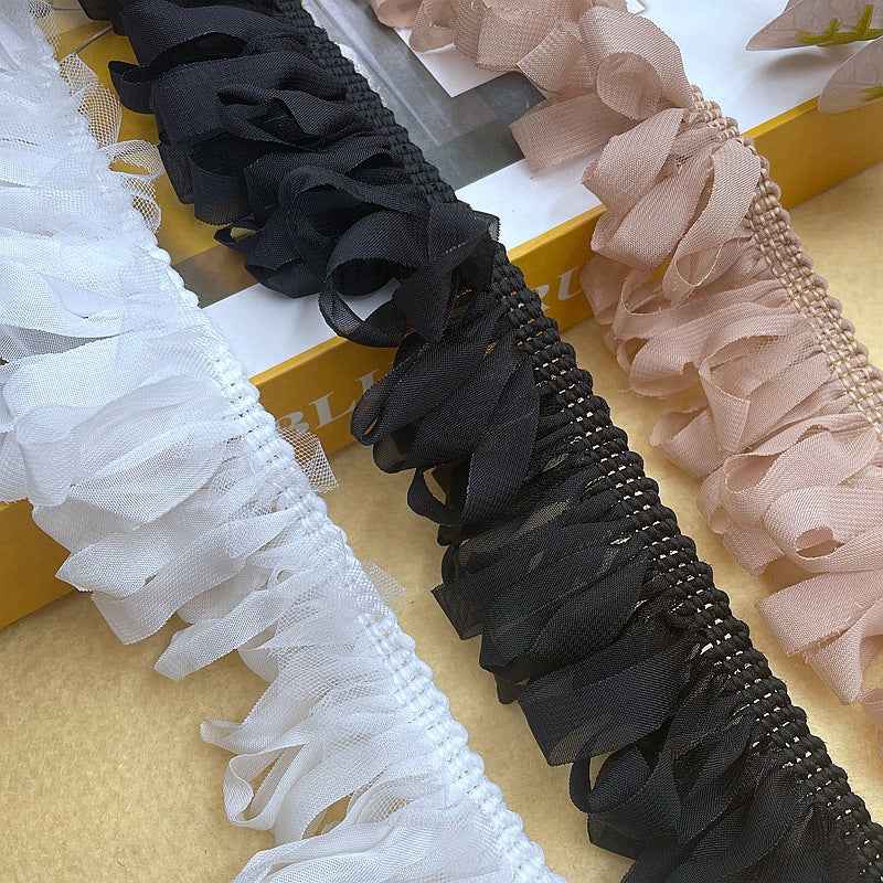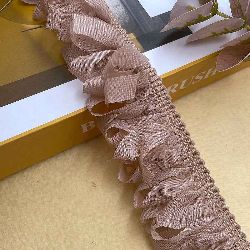 5cm vævet chiffon frynsetrim med kvastdetaljer – 10 yards