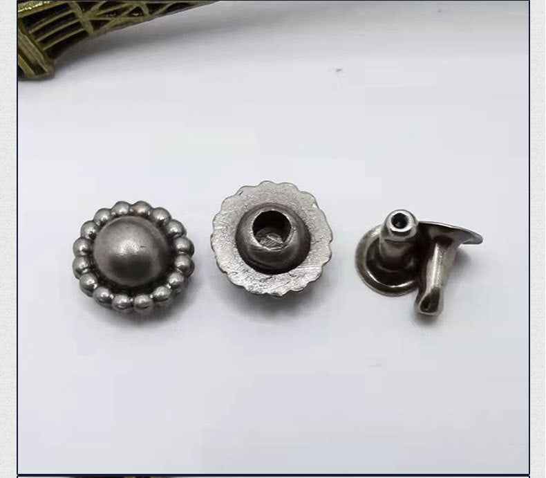 Opgrader dine DIY-projekter med disse 9mm vintage græskar nitter! Disse antik sølv nitter tilføjer en unik, rustik charme til tasker, sko, hatte, jakker og læderhåndværk. Fremstillet af høj kvalitet zinklegering, kombinerer de holdbarhed med en slidt vintage finish for et autentisk retro look.
