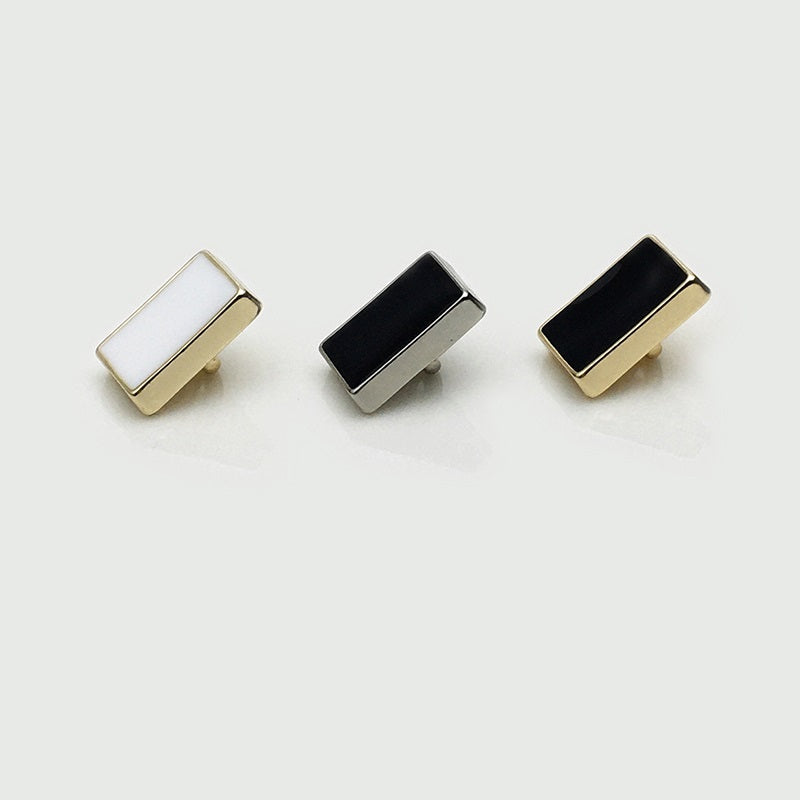 Disse stilfulde 9x13mm knapper er et must-have til ethvert skjortefremstillings- eller renoveringsprojekt. Den rektangulære form giver et moderne twist sammenlignet med traditionelle runde knapper og tilfører et strejf af sofistikering. Fremstillet af metal af høj kvalitet, fås de i klassisk sort og hvid, hvilket sikrer alsidighed til at matche enhver stoffarve eller mønster. Den glatte finish ser ikke kun godt ud, men føles også behagelig at røre ved. Deres størrelse er perfekt til standard skjortemanchetter, kraver og knapstykker. Uanset om du laver en formel business-skjorte eller tilføjer et trendy touch til en afslappet button-down, giver disse knapper en problemfri syoplevelse og vil forbedre dit tøjs samlede æstetik med deres underspillede elegance.