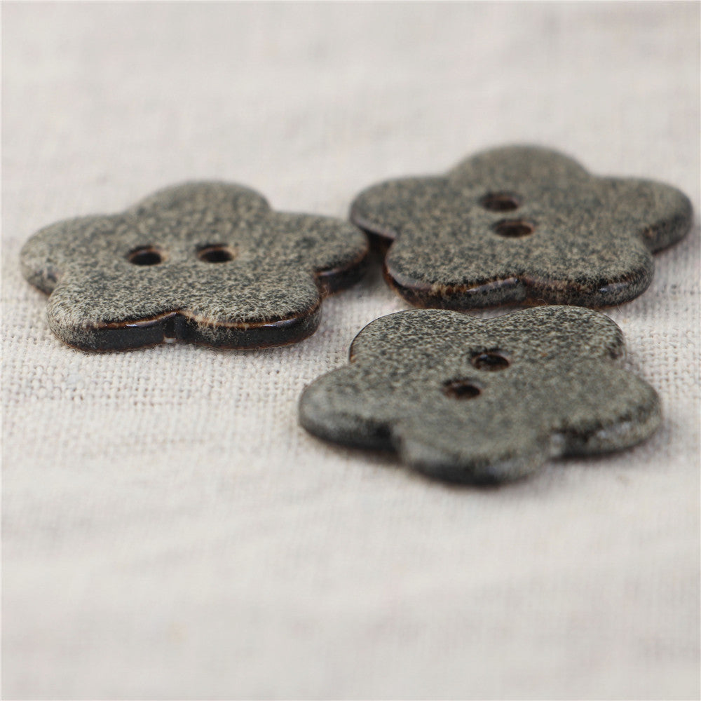 Sort og grå fembladet kløver håndlavede keramiske 2-huls syknapper 3 stk.