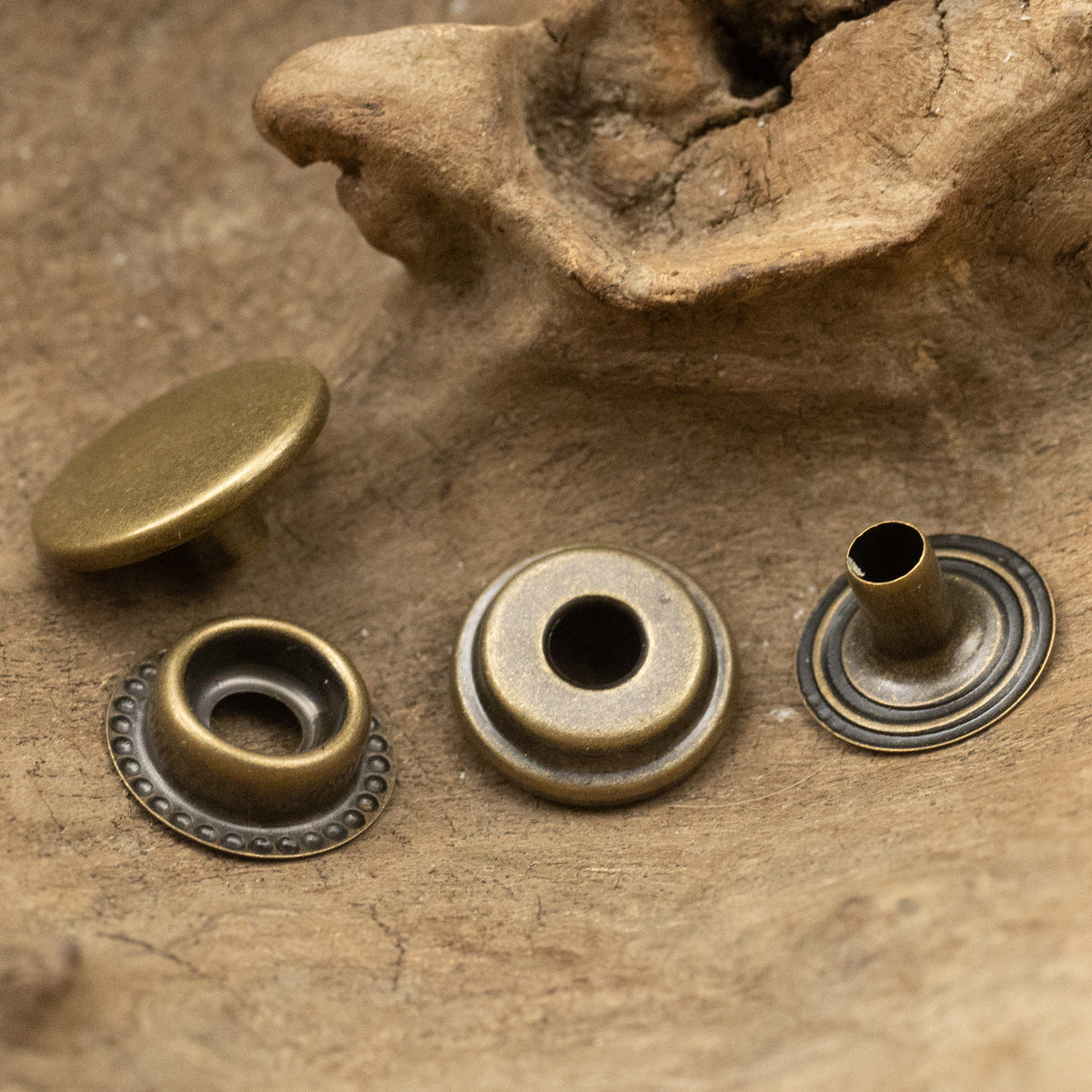 Messingkonstruktionen sikrer, at disse trykknapper kan modstå belastningerne ved regelmæssig brug. Uanset om det er den konstante bevægelse og slid, der er forbundet med denimjeans, strækningen og trækket på bukser eller kravene ved udendørsaktiviteter i en dunjakke, vil disse knapper holde fast.