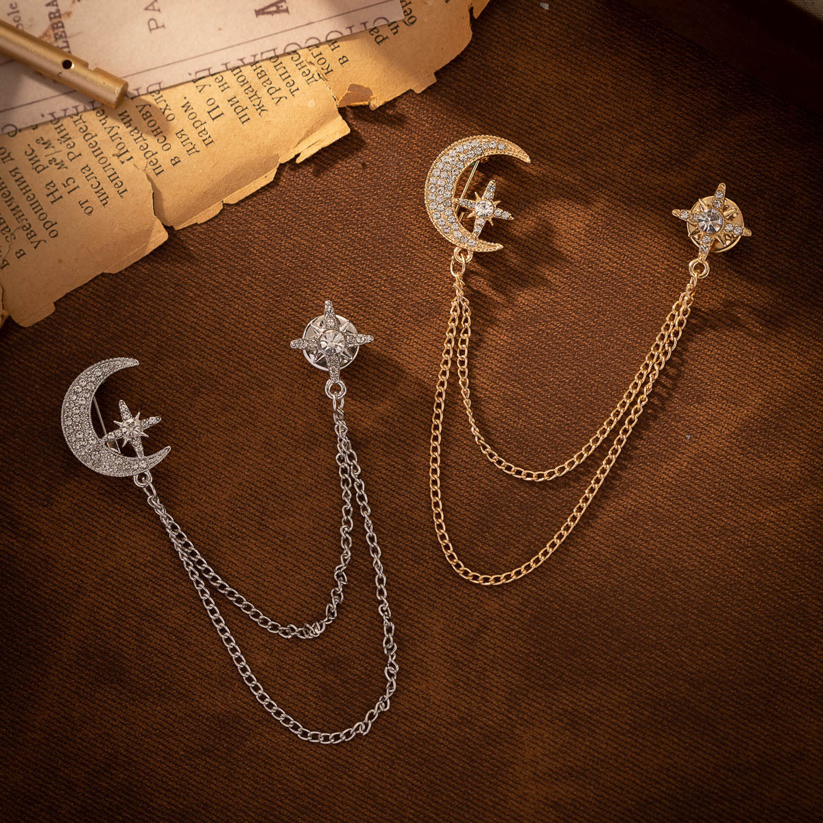 Kreativ Månekæde Broche - Guld og Sølv 2-delt Sæt