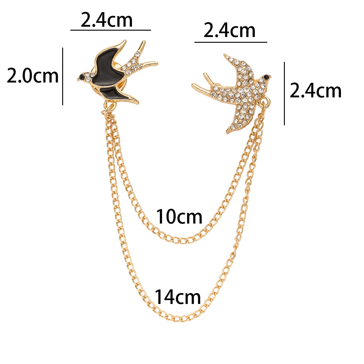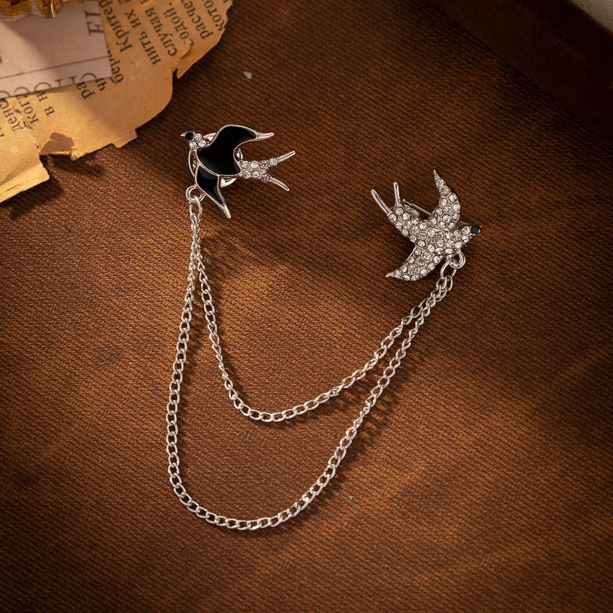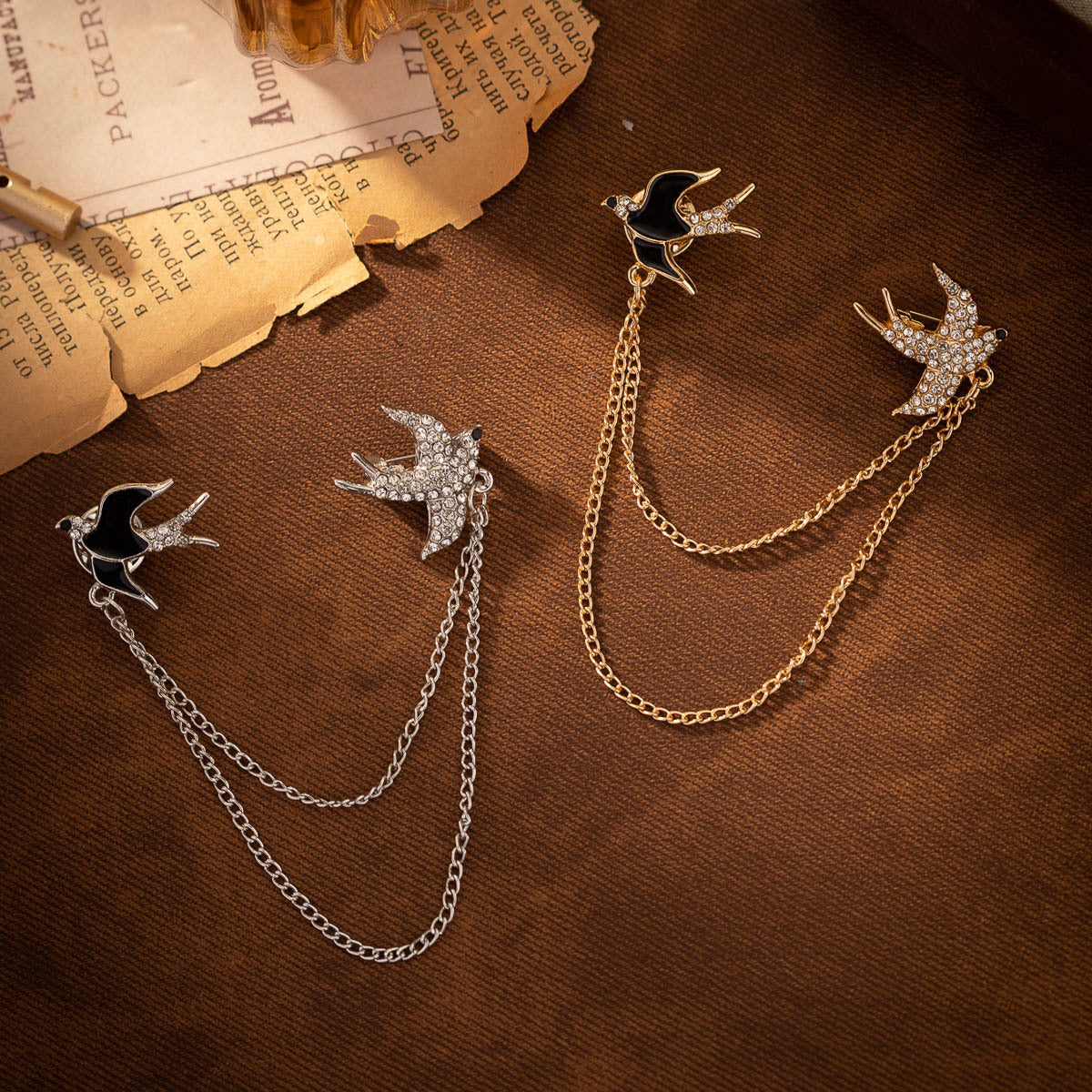 Flyvende Svaler Metalbroche til Kvinder - Moderigtig Jakkesæt Nål med Kædekvast 2 Pak