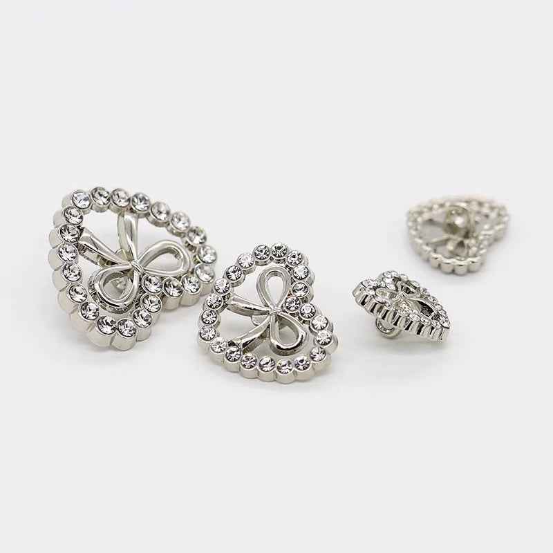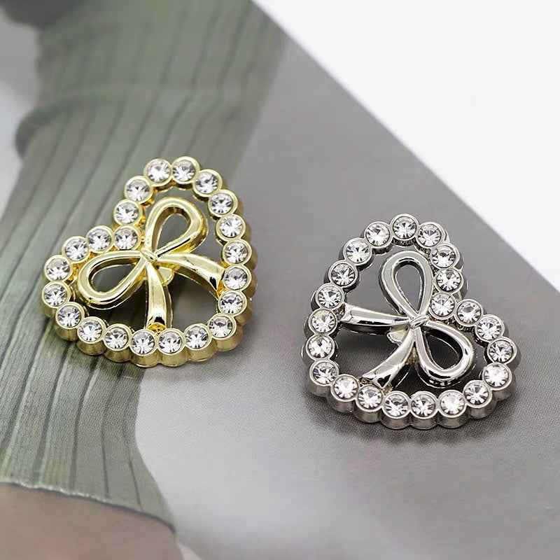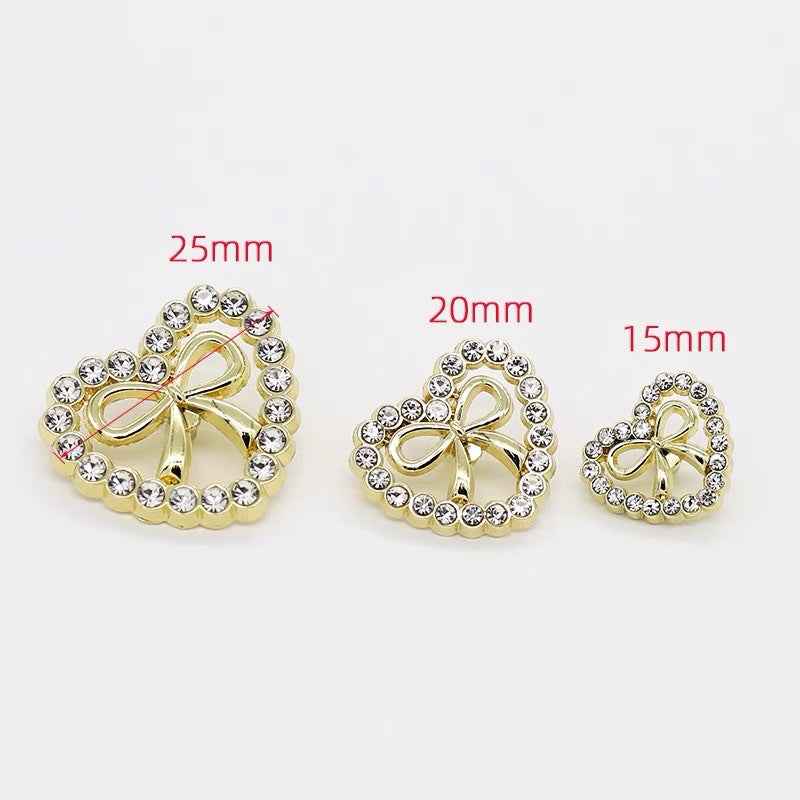 15/20/25mm Moderigtige Hjerteformede Rhinstenbesatte Sløjfe Metal Knapper med Skaft til Kvinders Kjoler, Sweatere og Cardigans 12stk