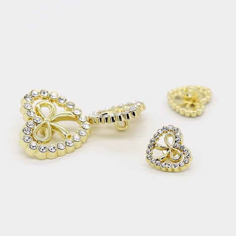 Hjerteformede Rhinstenbesatte Sløjfe Metalknapper til Kvinders Kjoler 12 stk