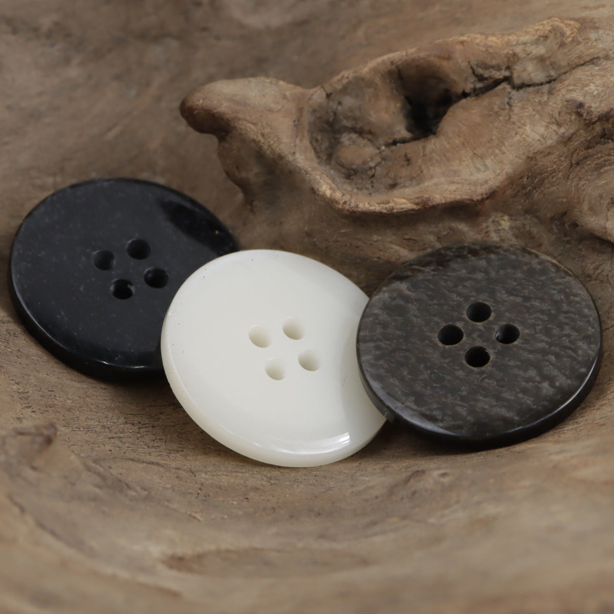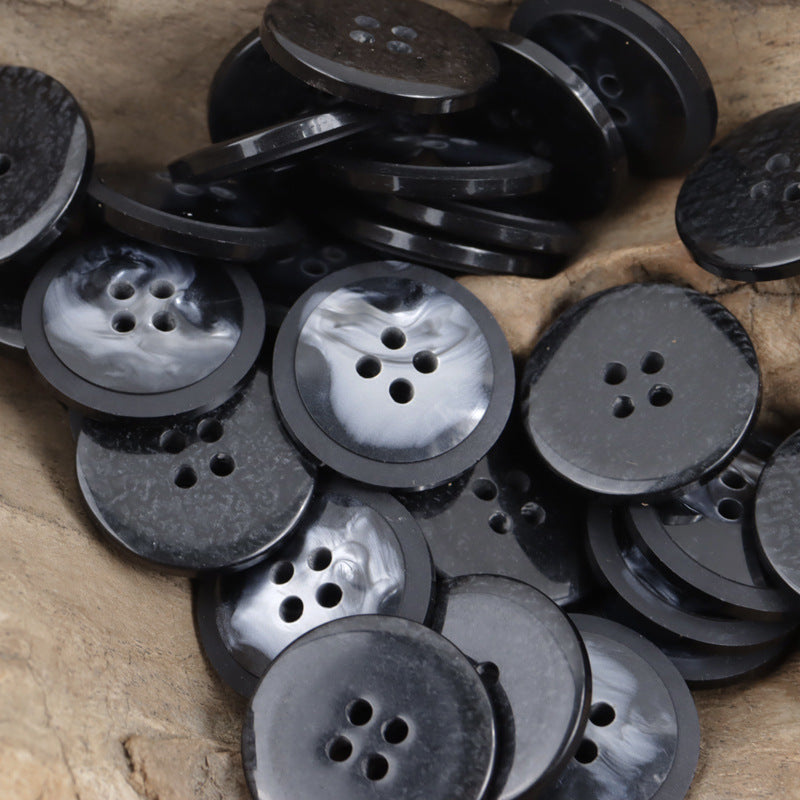 Industrielle Runde 4-huls Harpiks Knapper - Ideelle til Moderigtige og Kantede Mørke Hoodies og Cargobukser - 30 stk