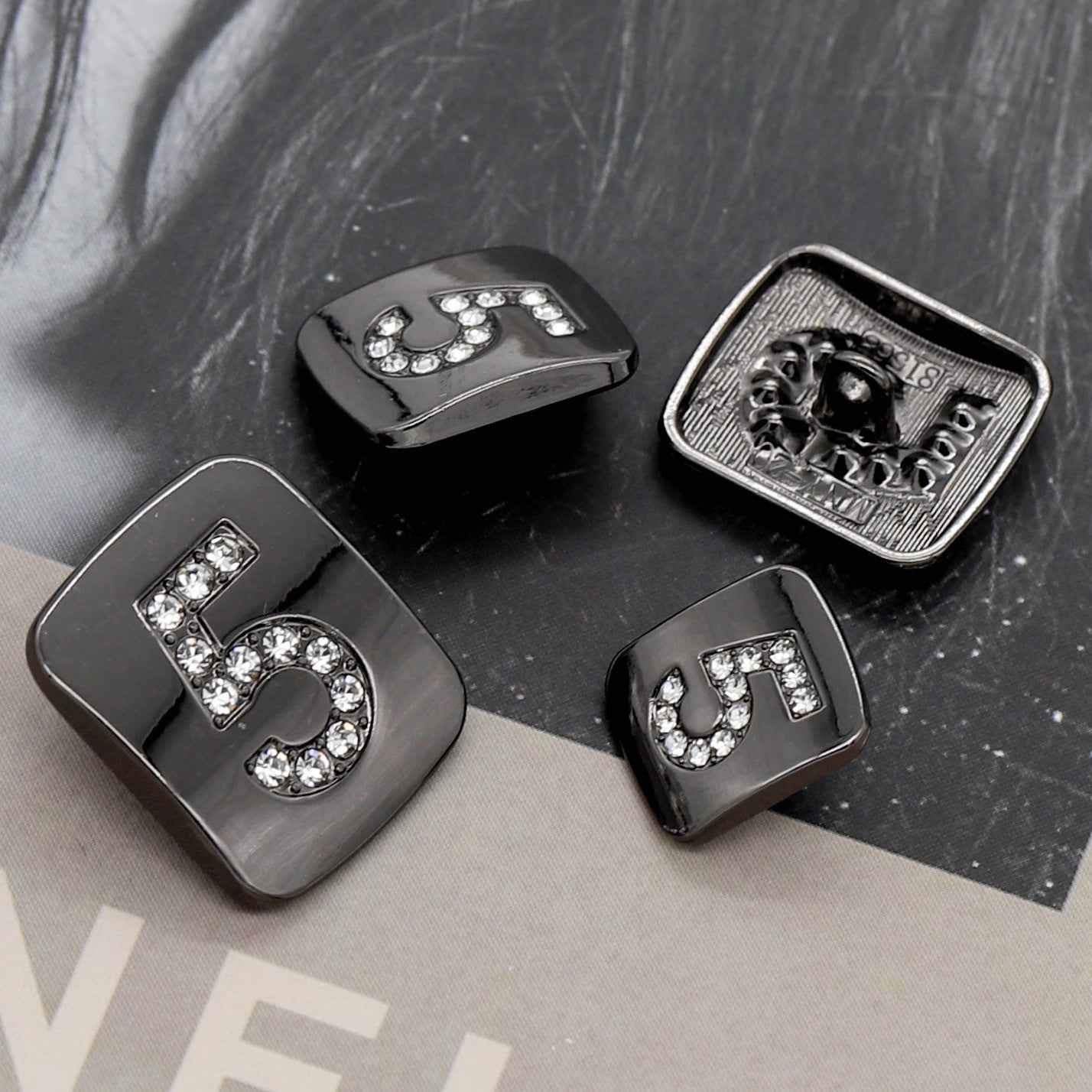 Gør et dristigt statement med vores 15/18/20/23MM Nummer 5 Shank-knapper, tilgængelige i guld, sølv og gunmetal-finish. Disse elegante knapper har et buet rektangulært design prydet med glitrende rhinsten, der tilføjer et strejf af glamour til ethvert projekt. Perfekte til tøj, tilbehør eller DIY-håndværk, de kombinerer funktionalitet med høj stil. Shank-bagsiden sikrer nem og sikker fastgørelse, mens den holdbare metal konstruktion garanterer langvarig brug. Uanset om du personliggør en jakke, taske eller boligindretningsgenstand, er disse knapper det ultimative valg for en luksuriøs og unik finish. Forhøj dine designs med et strejf af sofistikering og glans!