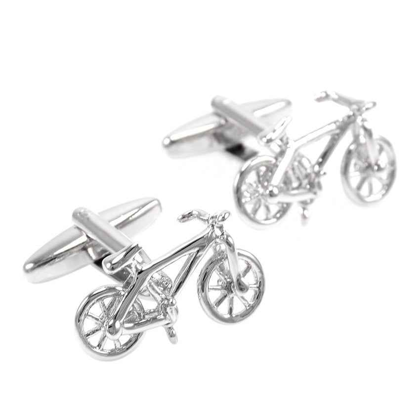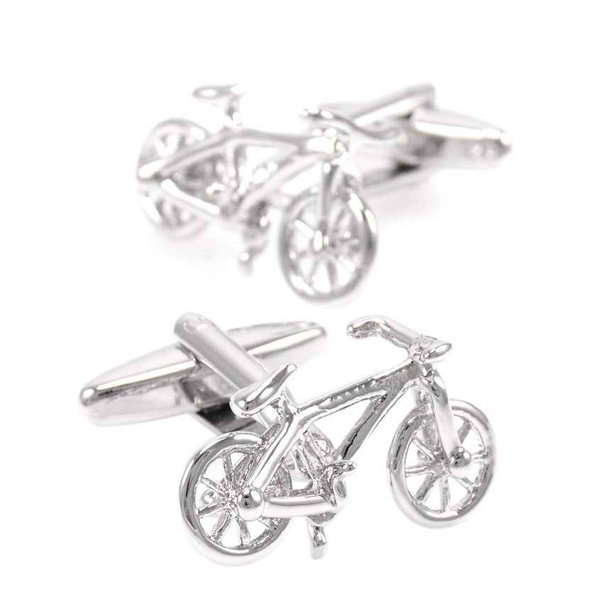 Manchetknapper i poleret stål formet som cykler – unikke cykel-tema tilbehør til skjorter