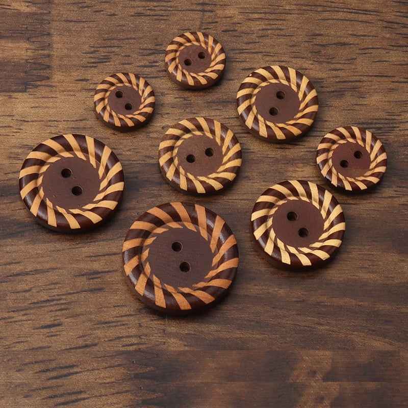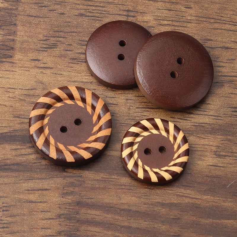 15 - 27,5 mm Runde 2-Huls Brune Malede Lasergraverede Træknapper til Børnetøjspynt