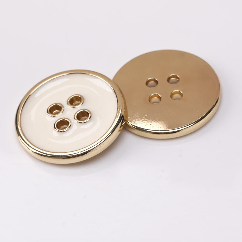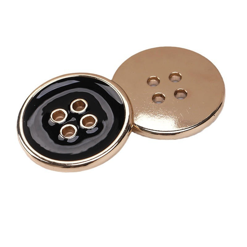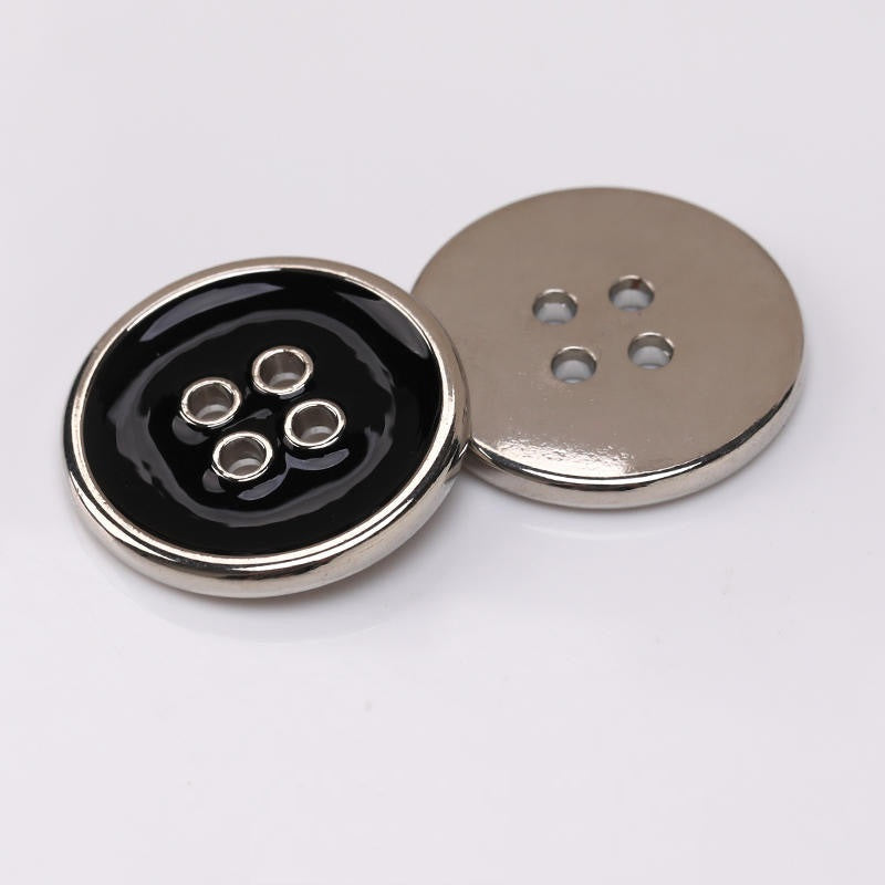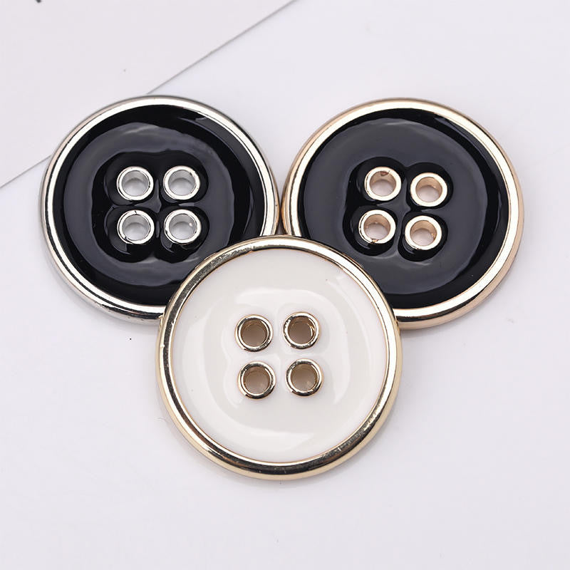 Disse knapper fås i størrelser fra 11.5mm til 25mm og har en klassisk rund form. De karakteristiske guld- og sølvkanter tilføjer et strejf af luksus og sofistikering. Den sort-hvide emaljefinish giver dem et elegant og moderne udseende. Med fire huller tilbyder de fleksibilitet ved syning og passer til forskellige stoftyper. Ideelle til tøj, tilbehør eller gør-det-selv-projekter, er disse knapper ikke kun funktionelle, men også dekorative. De kan forbedre det overordnede design af beklædning, tasker eller boligindretningsgenstande. Kombinationen af de metalliske kanter og emaljebelægningen gør dem til et alsidigt valg, der giver et elegant og stilfuldt accent til enhver kreation.