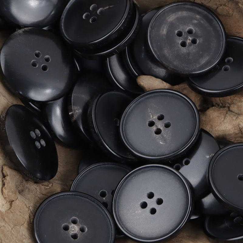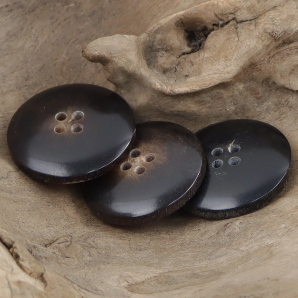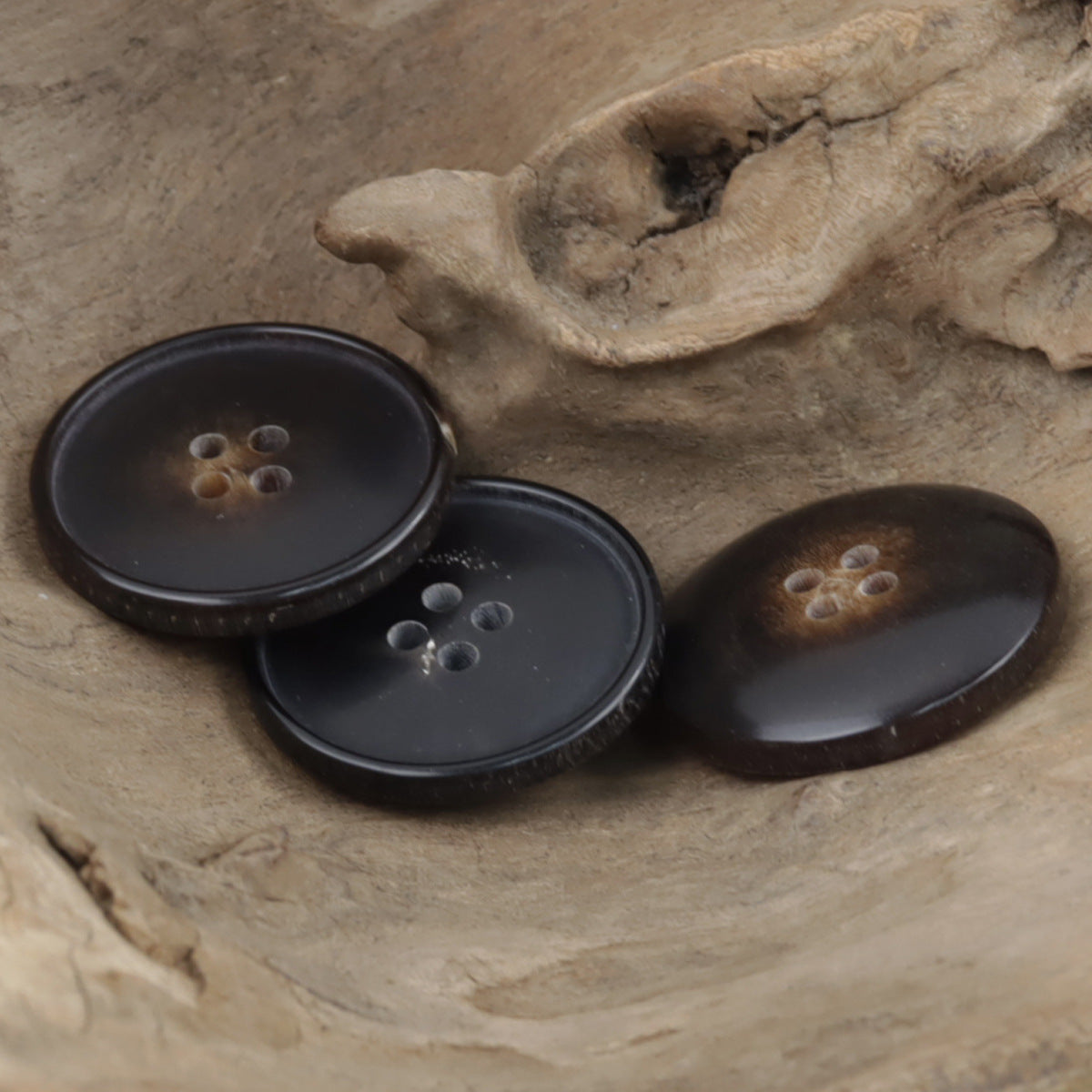 Runde 4-huls naturlige sorte oksehornsknapper til efterårs- og vinter khaki duffeljakker og trenchcoats, 10 stk.