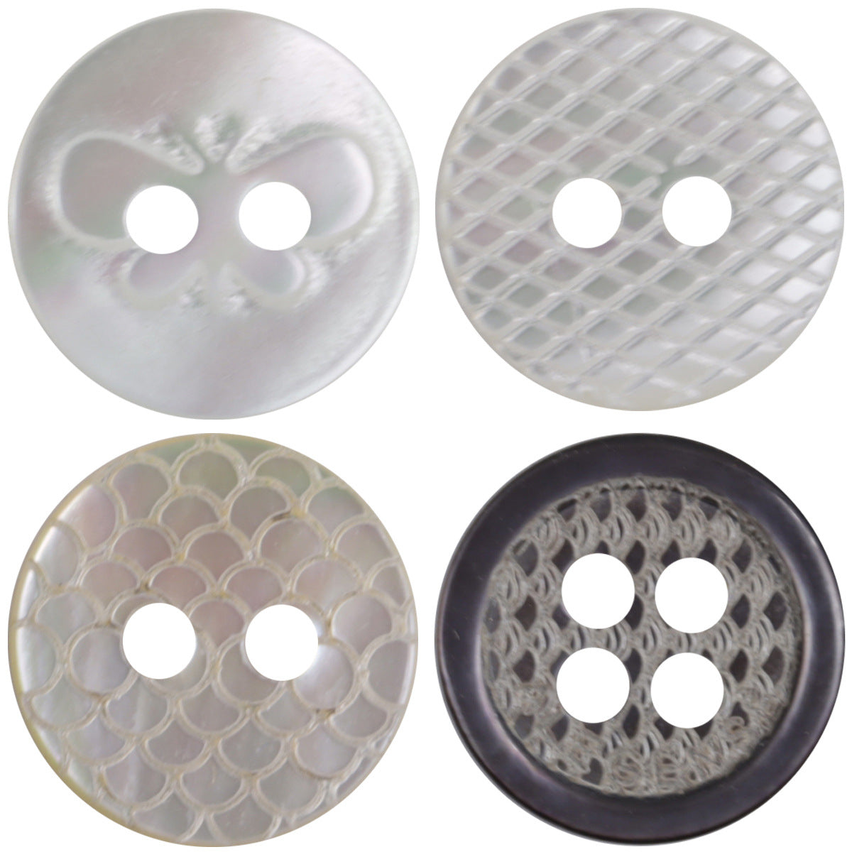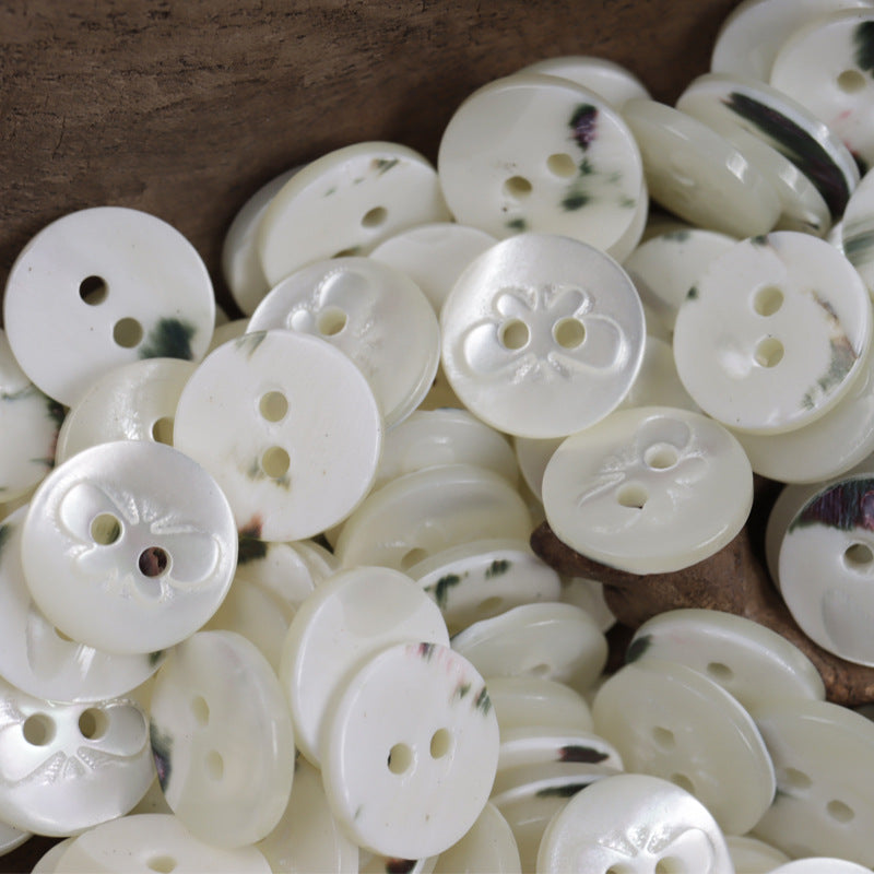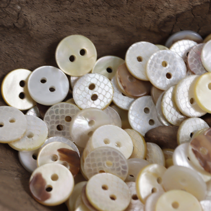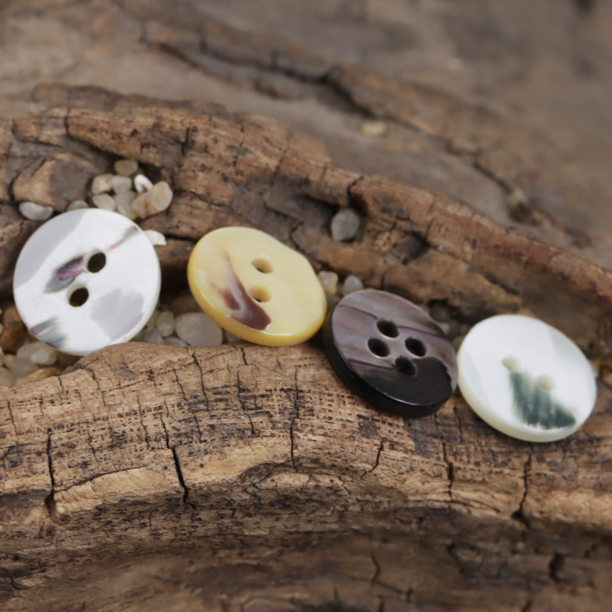 Hver knap er unik med sine egne naturlige variationer og ufuldkommenheder, hvilket gør dem til et unikt supplement til ethvert beklædningsstykke. Knapperne er holdbare og langtidsholdbare, hvilket sikrer, at de bliver på plads og ser smukke ud i mange år.