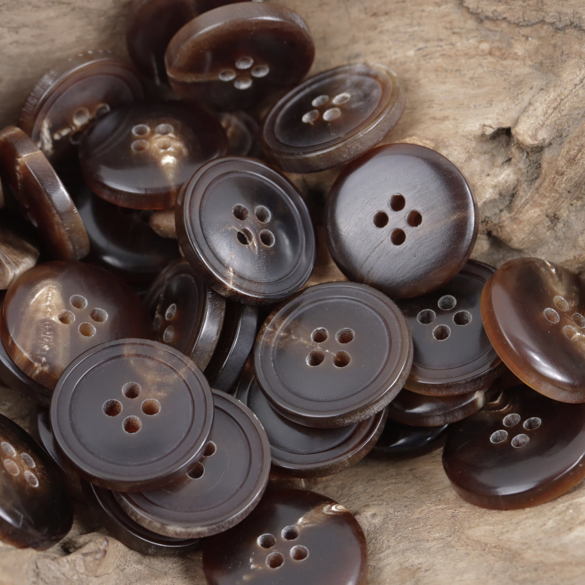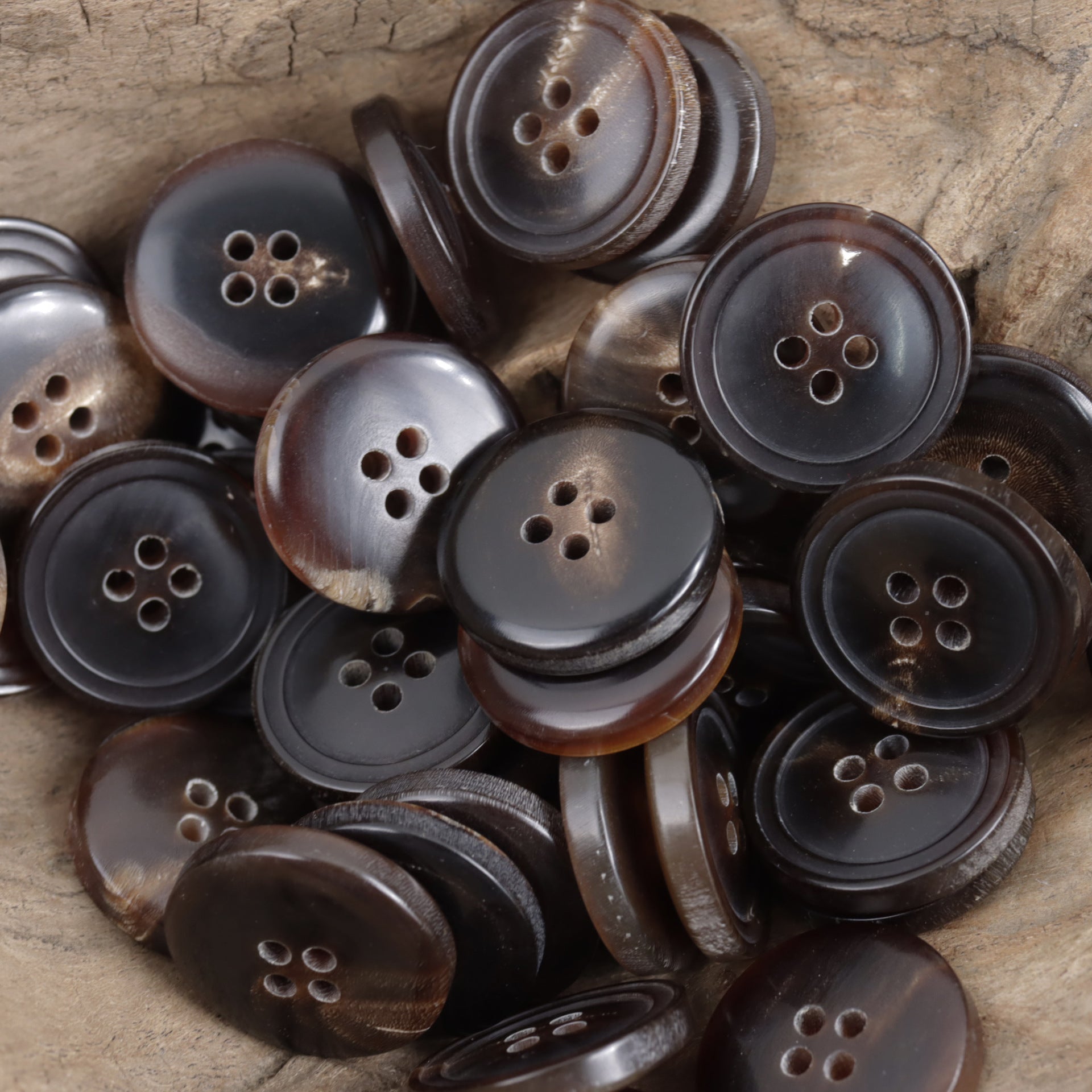 Runde 4-huls kaffe-farvede ægte hornknapper - Ideelle til efterårs-vinter uldfrakker og jakkesætmanchetter 10 stk