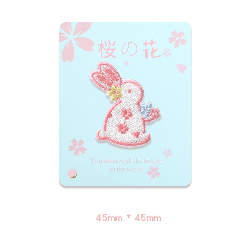 Selvklæbende lyserøde kanin Sakura broderede patches 10 stk.