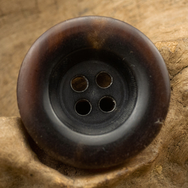 Fortykkede skålformede kaffe-farvede horn-fire-øje knapper til læderjakker, 10 stk