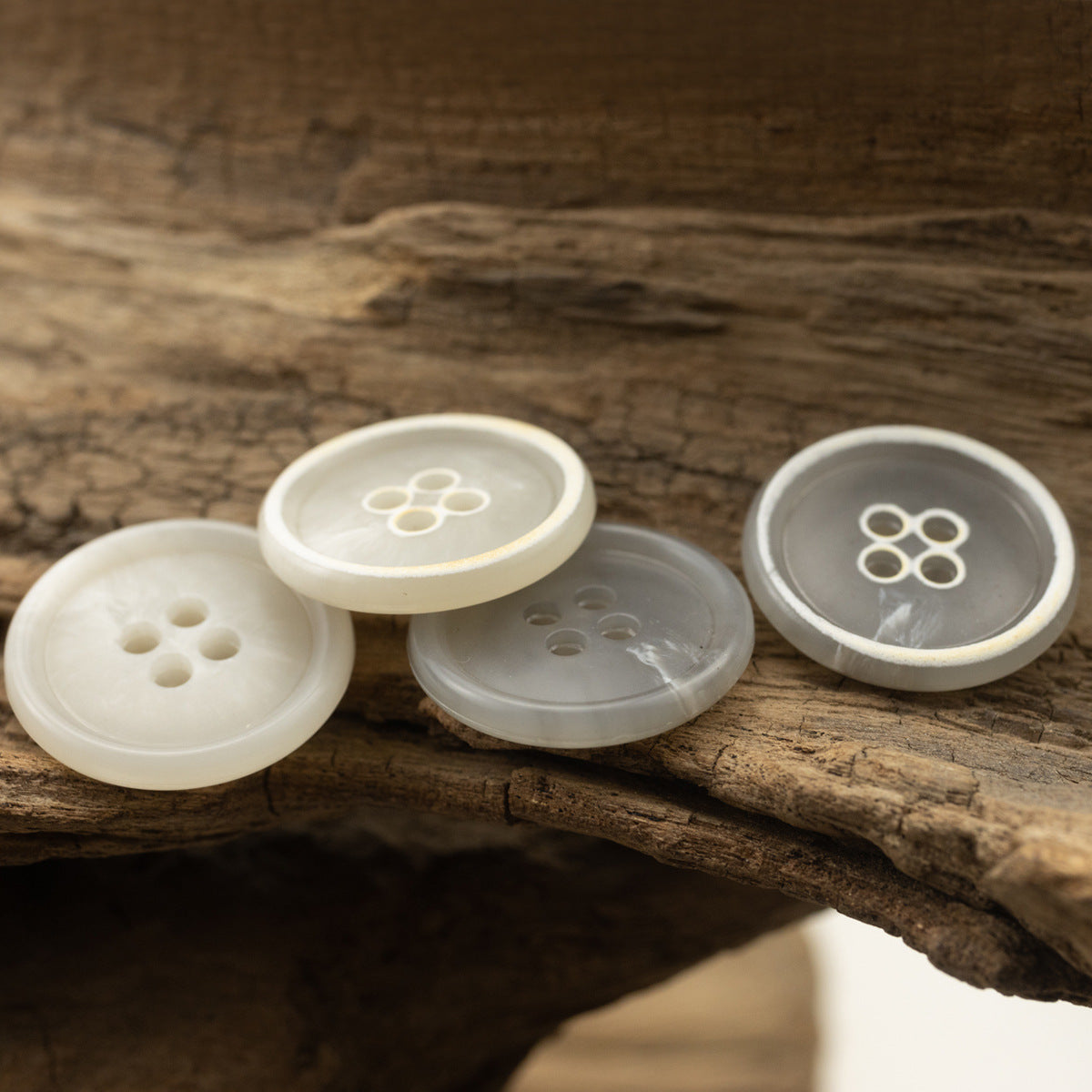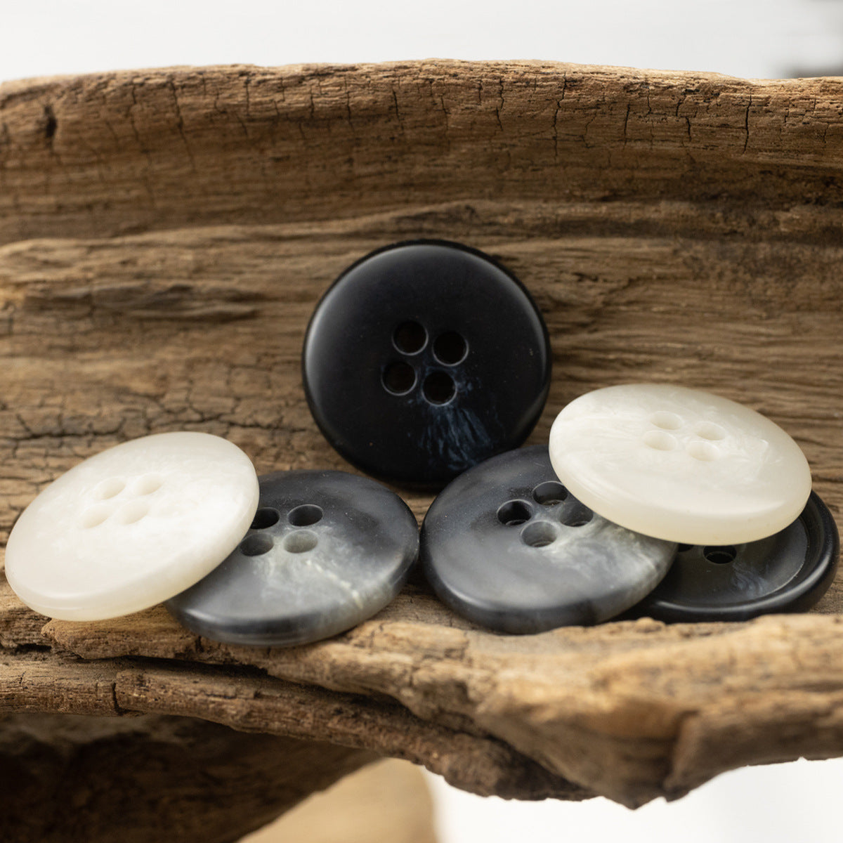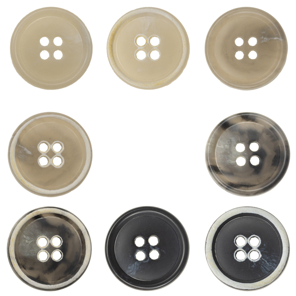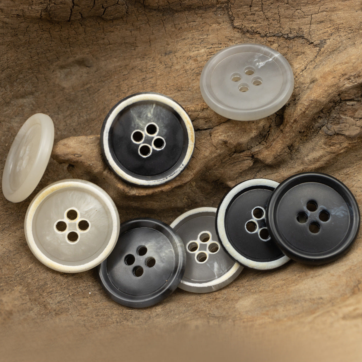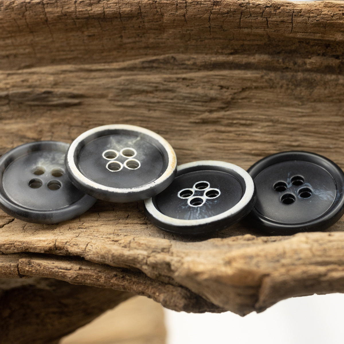 Premium jakkesæt urea harpiks knapper med imiteret hornmønster, Runde 4-huls, 10 stk