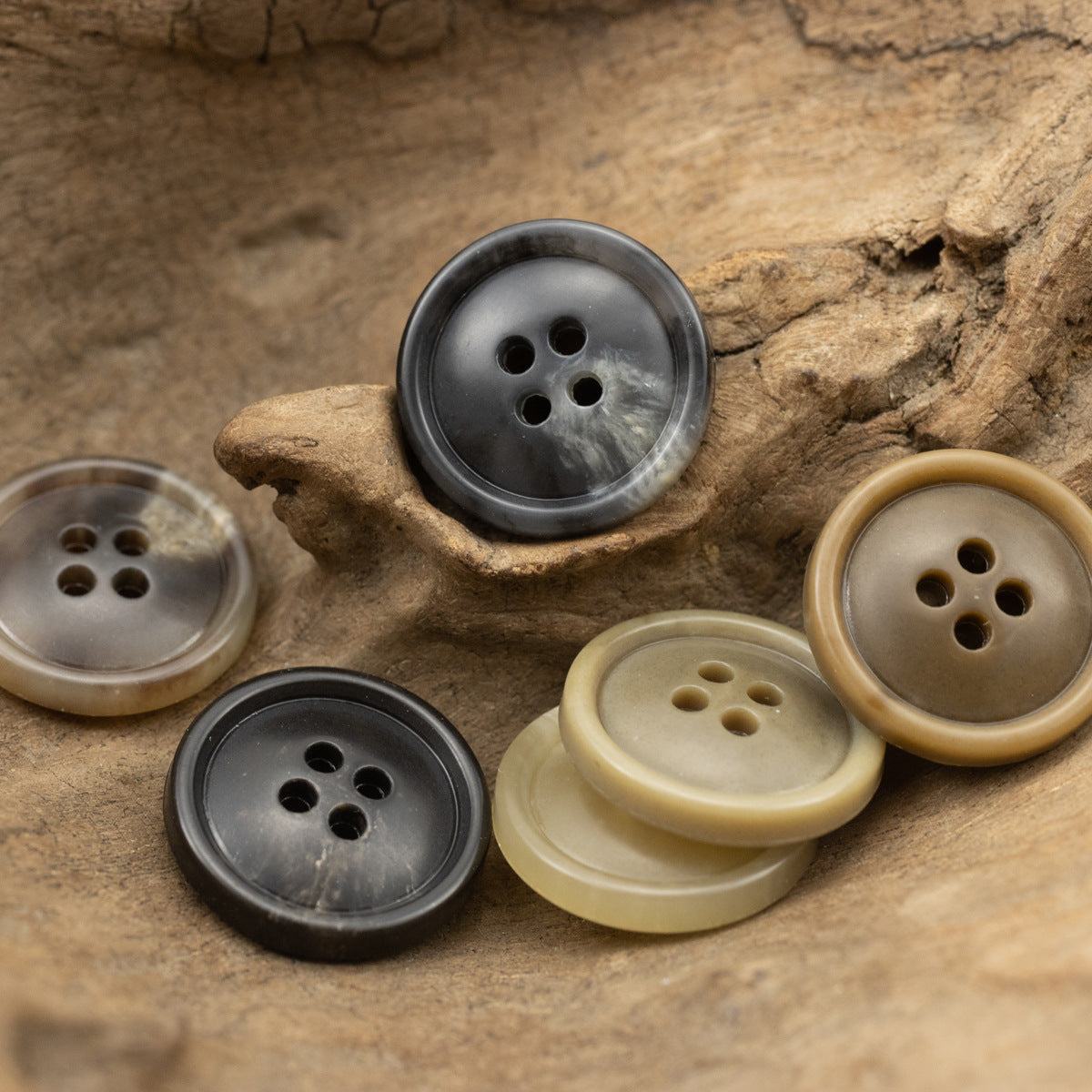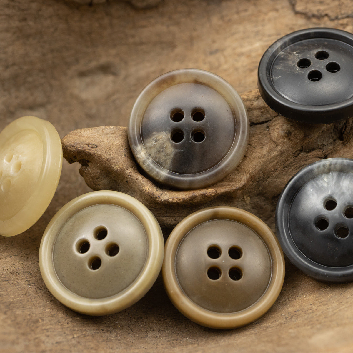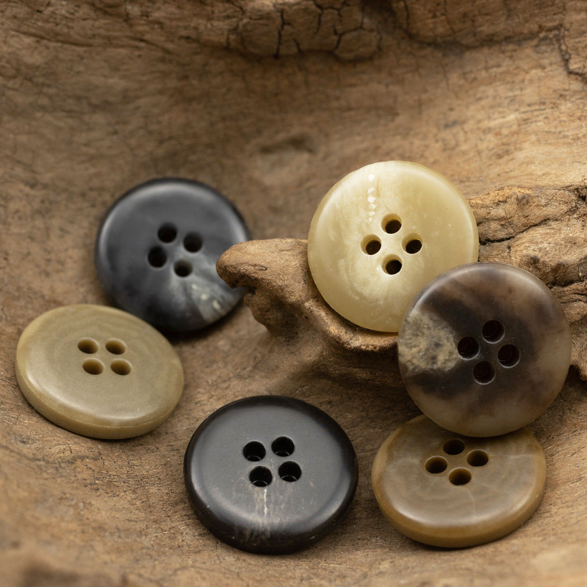 Disse knapper er lavet af urea, et materiale kendt for sin holdbarhed og kvalitet. Urea-knapper er modstandsdygtige over for slid, hvilket gør dem ideelle til brug på kashmirfrakker, som ofte er en luksusinvestering. Urea-materialet har også en glat finish, der giver en behagelig taktil oplevelse, når man håndterer knapperne.