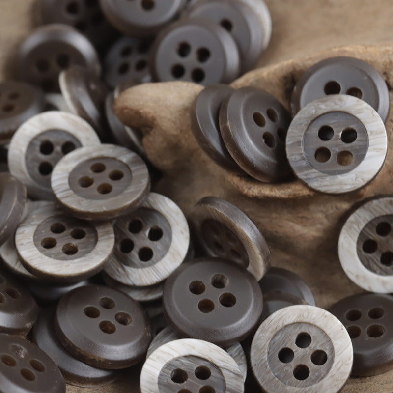 Bredkantede knapper i træmønsterharpiks til poloshirt-kraver, 50 stk.