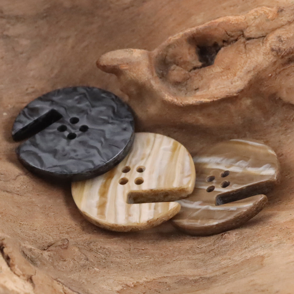 Alle knapperne her er af høj kvalitet. Men fordi de er lavet af naturlige materialer, vil du opleve, at finishen og farven kan variere en smule fra knap til knap