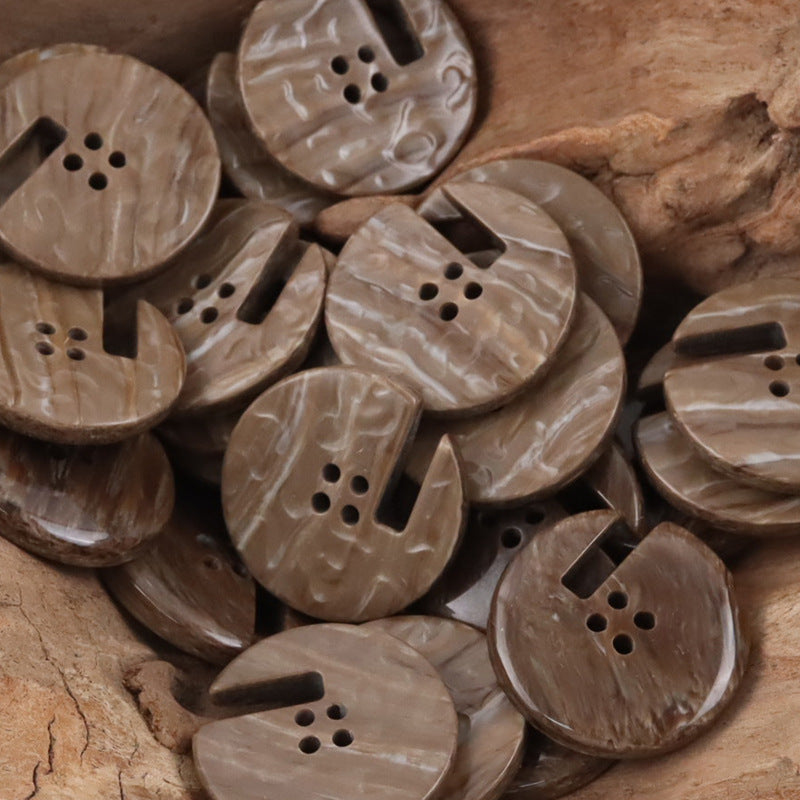 Disse søde og sjove knapper i træstrukturharpiks med hak er en dejlig tilføjelse til dine boligindretningspolstringprojekter. Deres unikke design kombinerer charmen ved en træstruktur med et strejf af legesyge i form af hakkerne, hvilket får dem til at skille sig ud og tilføre karakter til ethvert rum.