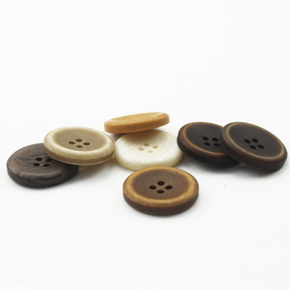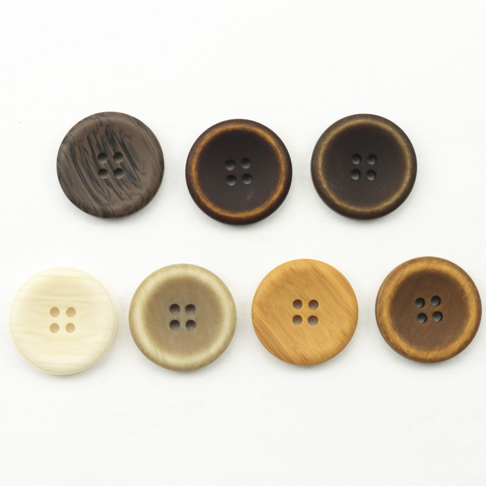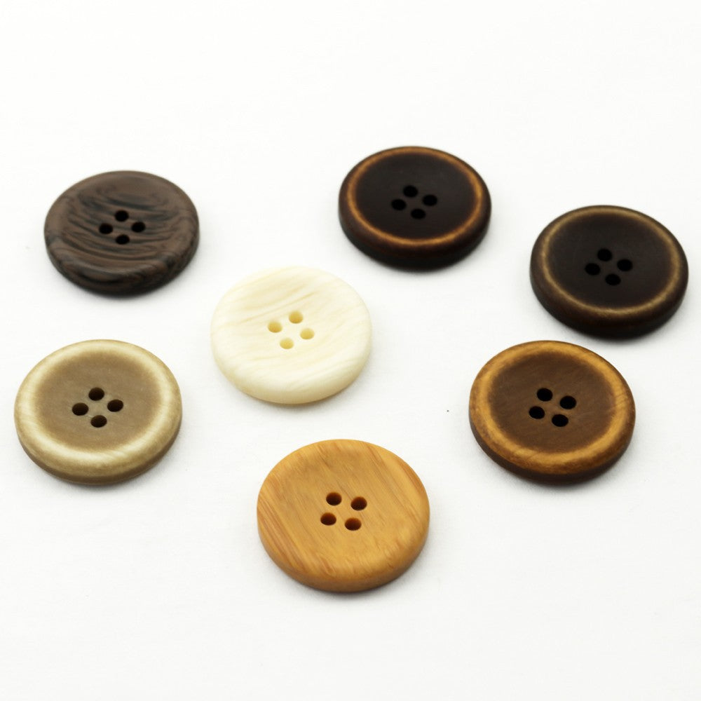 11,5 - 25 mm gul-orange firehuls knapper i harpiks - Beige, gulbrun, khaki, blåbrun, mørk kaffe, kaffe imitation træstruktur knapper 98 stk (7 farver)