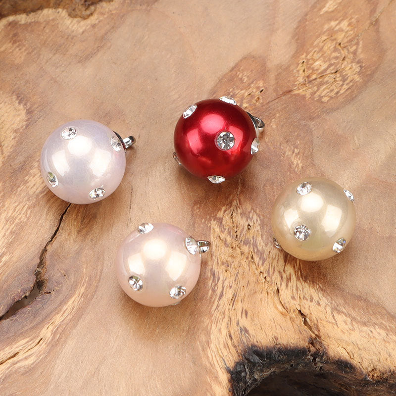 Κουμπί Πουκαμίσου από Πολύχρωμη Πλαστική Πέρλα 10mm με Στρας 6 τεμ.