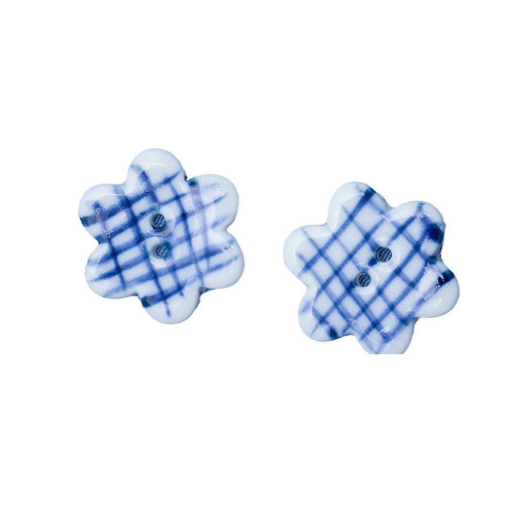27mm Μπλε και Λευκά Πορσελάνινα Κουμπιά Σχήματος Λουλουδιού με 2 Τρύπες 10 τεμ.