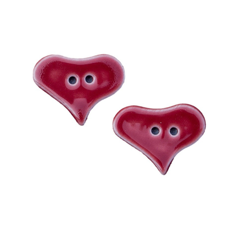 30mm Κόκκινα Κουμπιά Διακοσμητικά Κεραμικά Χειροποίητα σε Σχήμα Καρδιάς με 2 Τρύπες 6 τεμ