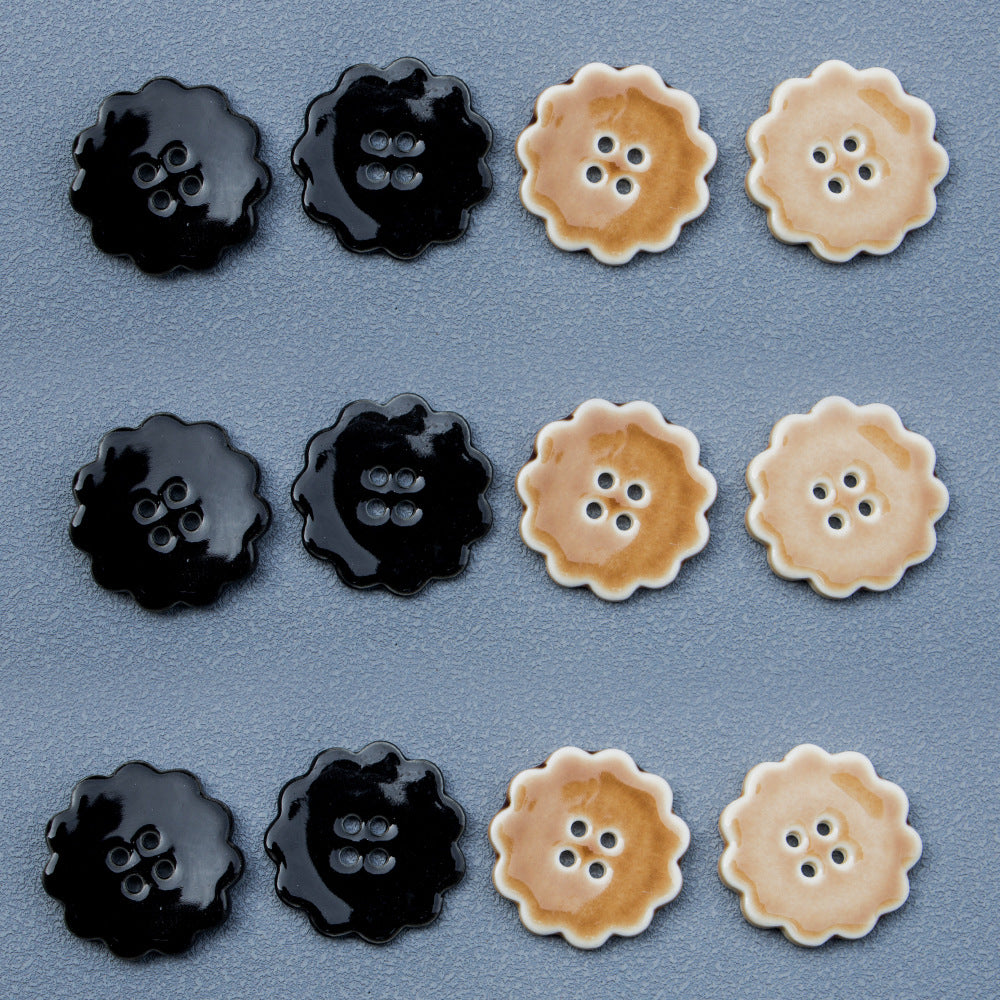 30mm Στρογγυλά Κουμπιά με Δαντέλα 4 Τρυπών Μαύρα και Χακί Χειροποίητα Κεραμικά 6 τεμ.
