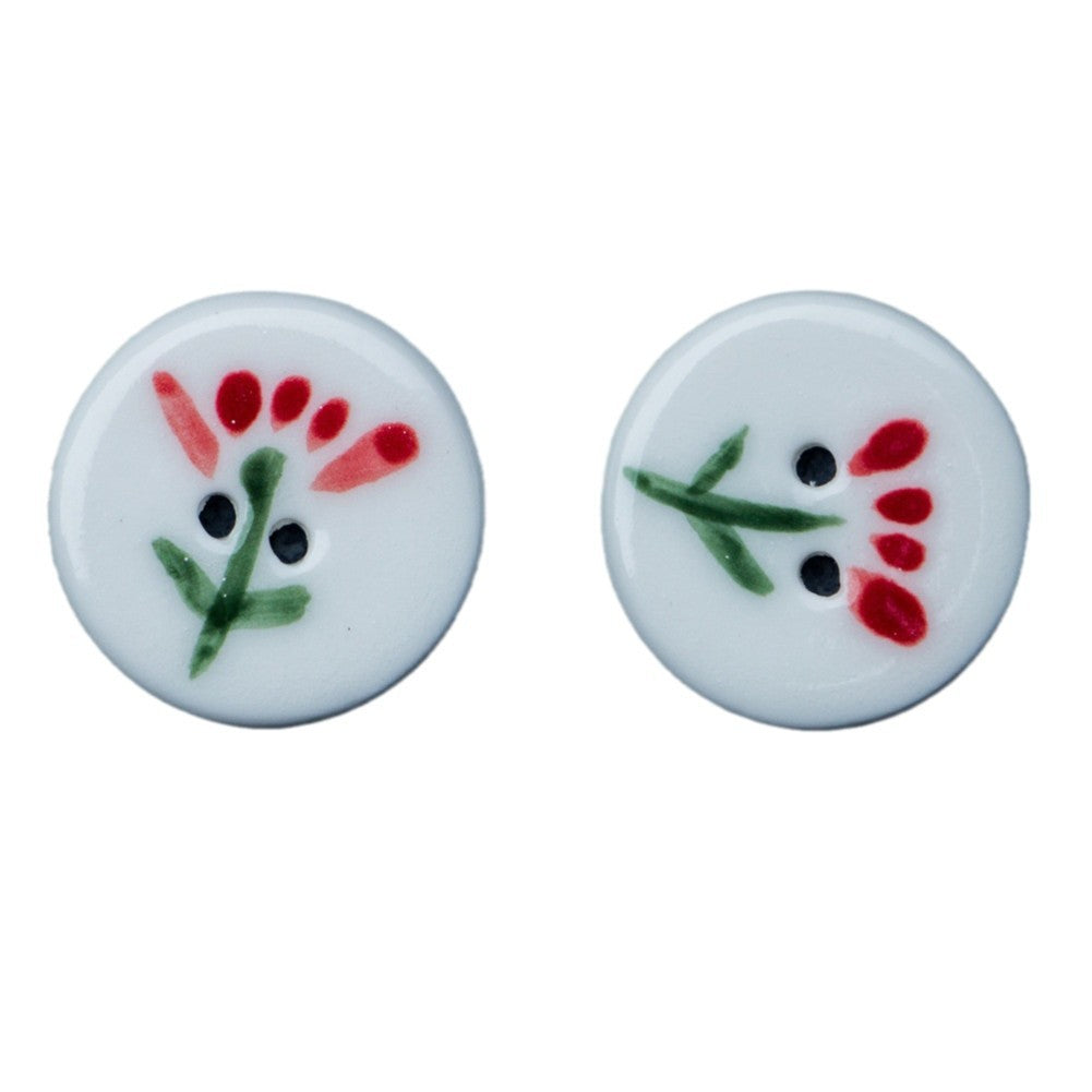20mm Στρογγυλά Λευκά Κεραμικά Κουμπιά με 2 Τρύπες και Σχέδιο Μικρού Κόκκινου Λουλουδιού 4 τεμ.