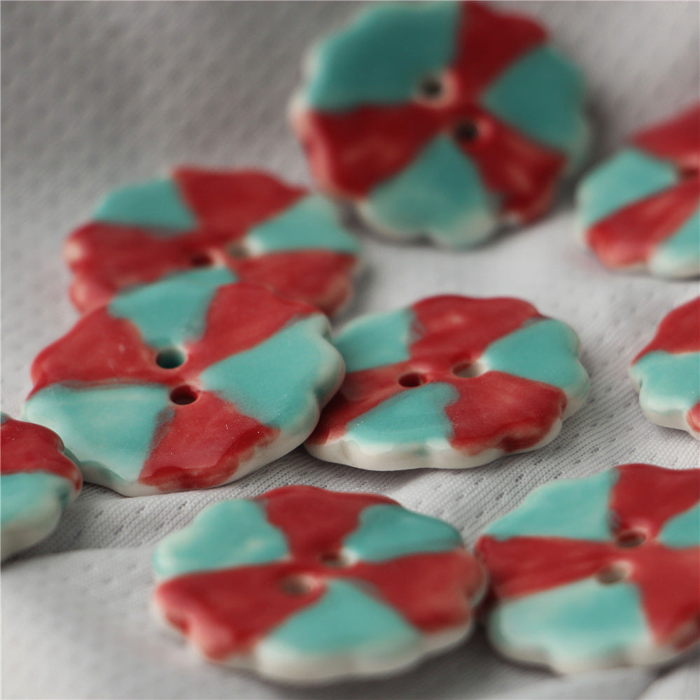 18mm Στρογγυλά 2 Τρύπες Χειροποίητα Κεραμικά Κουμπιά Ραπτικής Βαθύ Πράσινο Σκούρο Μπλε 4 τεμ.