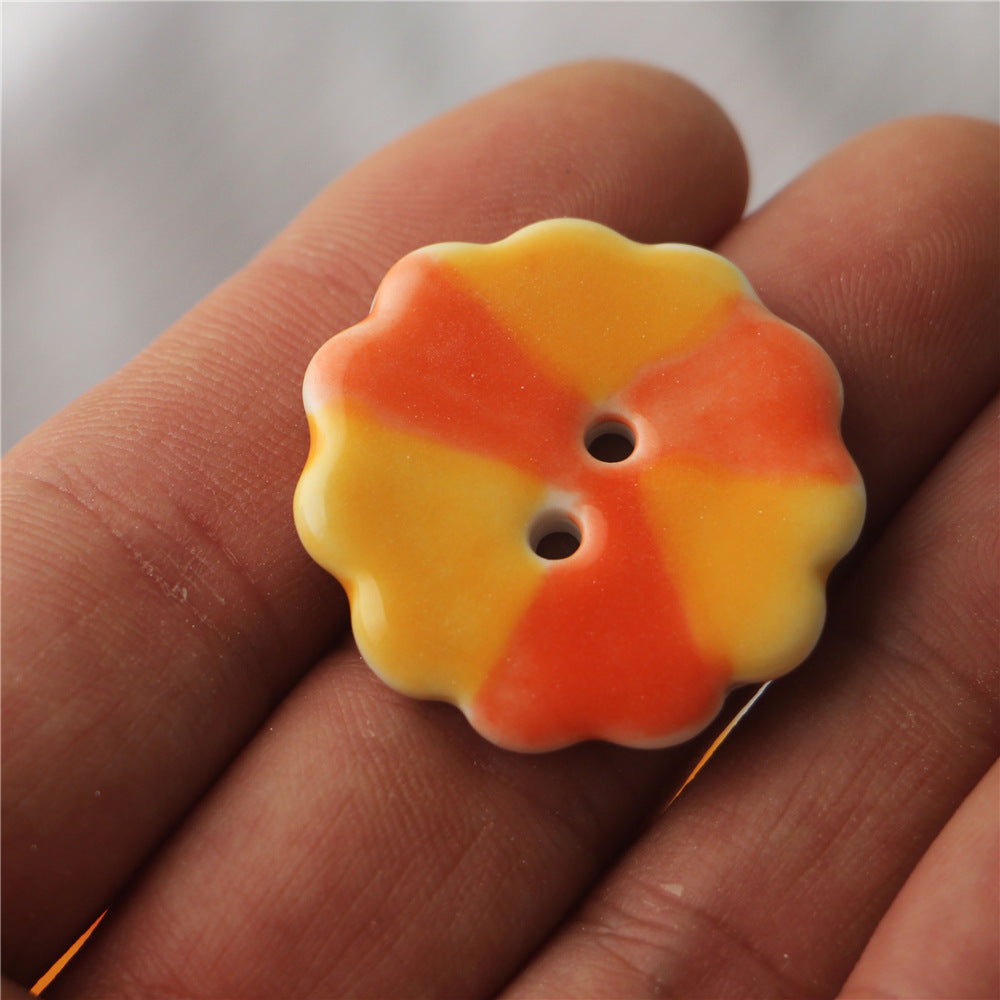 30mm ουρανό μπλε πορτοκαλί χειροποίητα στρογγυλά κεραμικά κουμπιά ραπτικής με 2 τρύπες 6 τεμ.