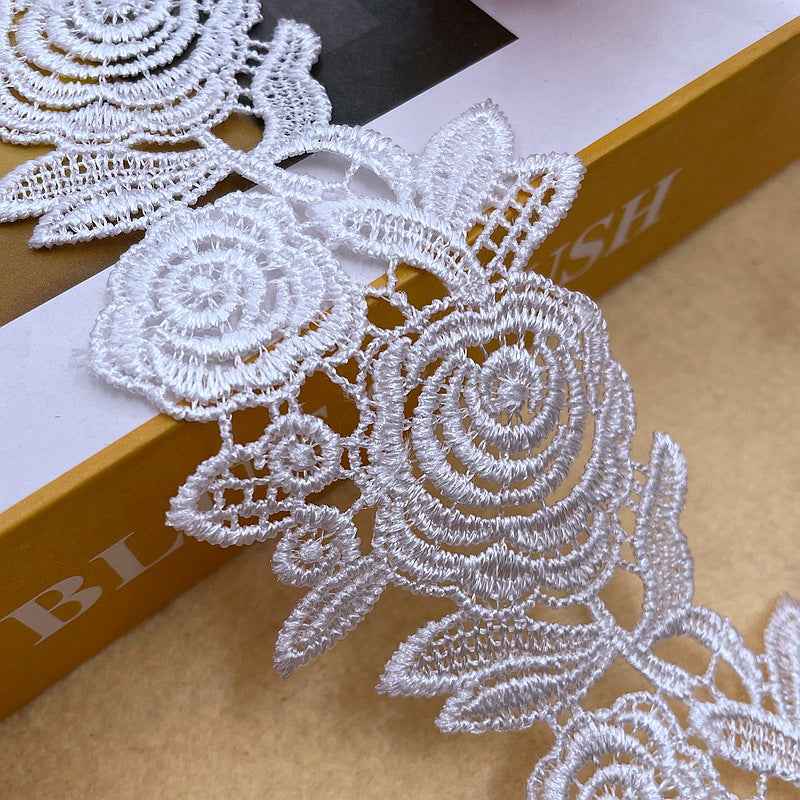4.3cm Νήμα Γάλακτος Υδατοδιαλυτική Φλοράλ Κεντημένη Δαντέλα – 10 Γιάρδες