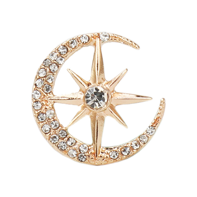 Καρφίτσα κοστουμιού 1,8CM με χρυσό και ασημί, διακοσμημένη με διαμάντια σε σχήμα φεγγαριού και οκτακτινής αστέρας 6 τεμάχια