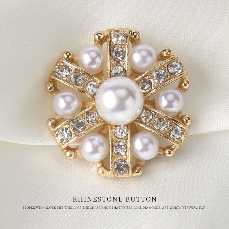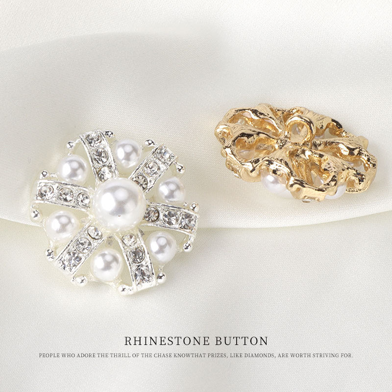 25mm 1 ίντσα Χρυσό και Ασημένιο Μεταλλικό Κουμπί με Στρας και Μαργαριτάρι με Λαβή 6 τεμ