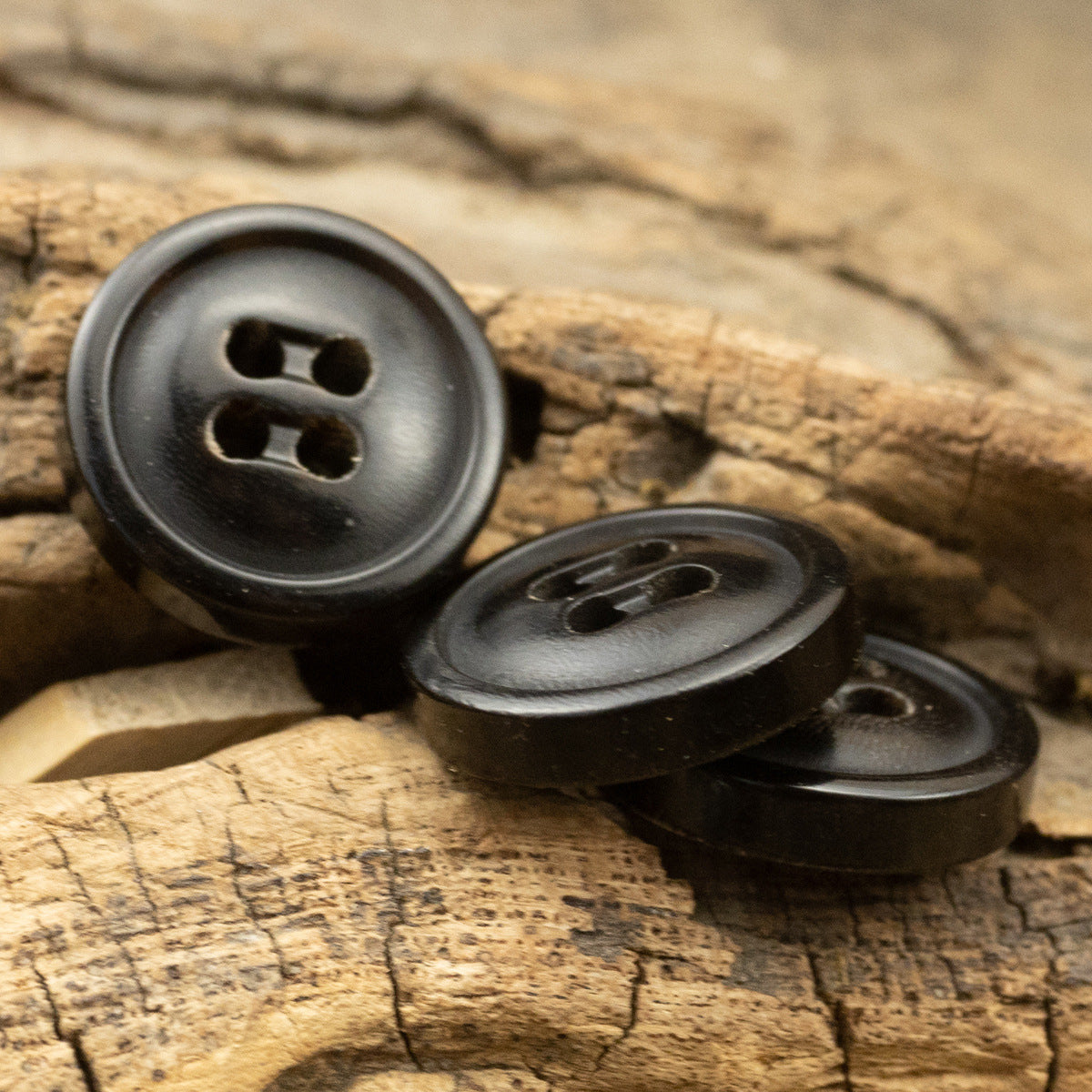 10/11.5/12.5mm Φυσικά Μαύρα Γνήσια Κέρατα Τετράτρυπα Κουμπιά 10 τεμ.