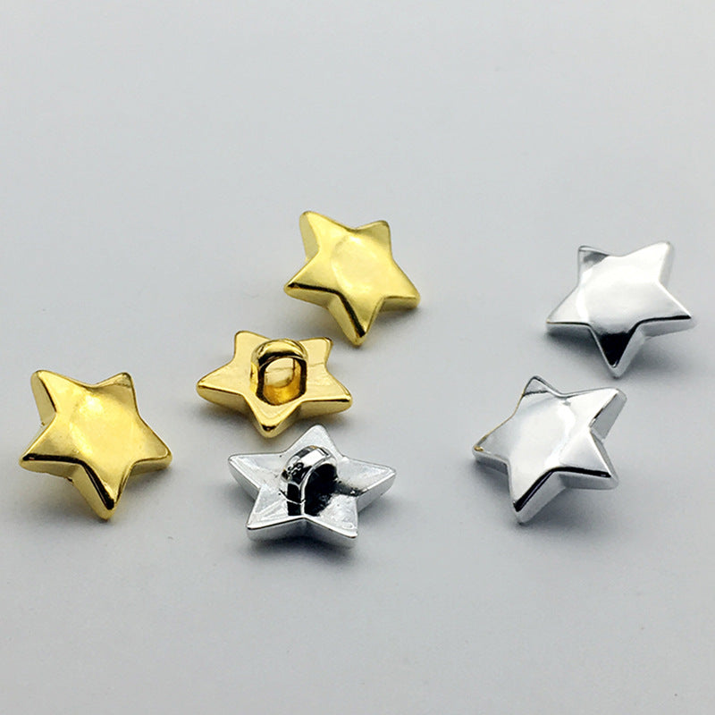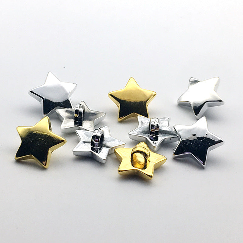 10/15/18mm Χρυσά και Ασημένια Πλαστικά Κουμπιά με Ψηλό Πόδι και Ραφή σε Σχήμα Αστεριού, 50 τεμάχια