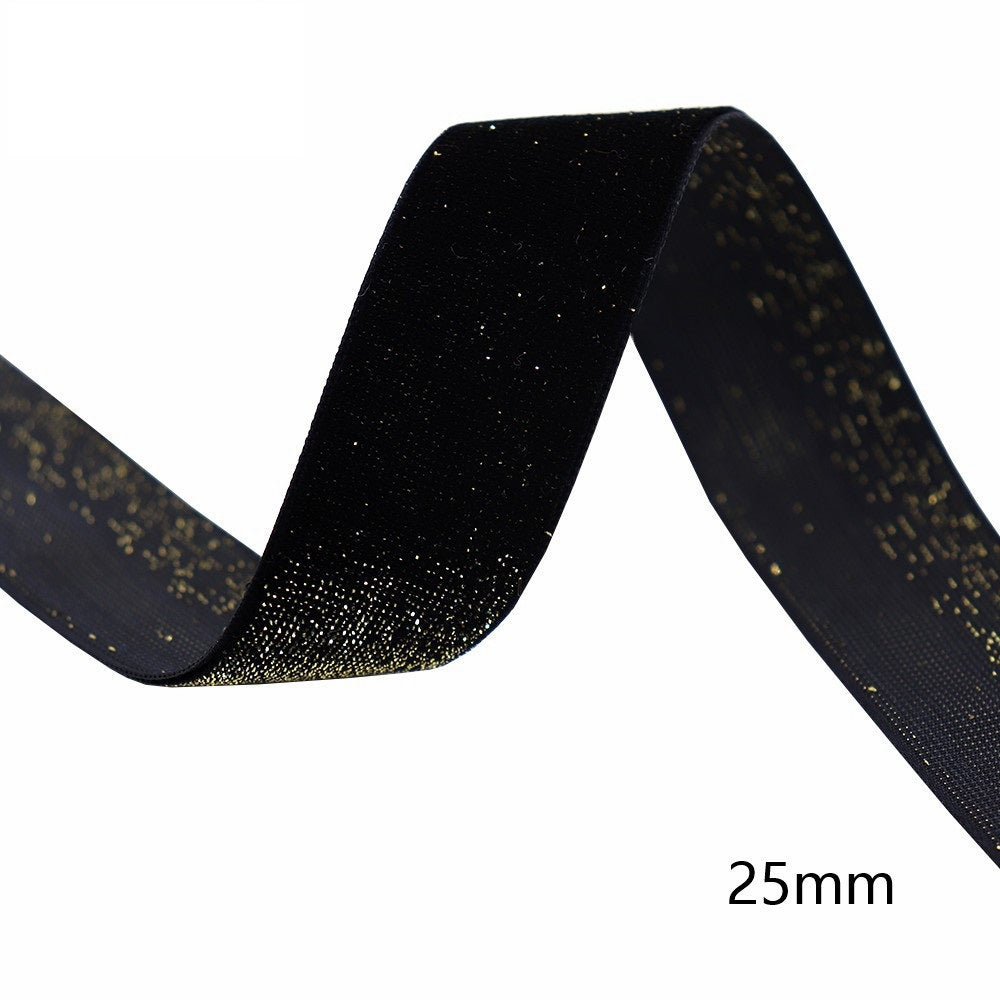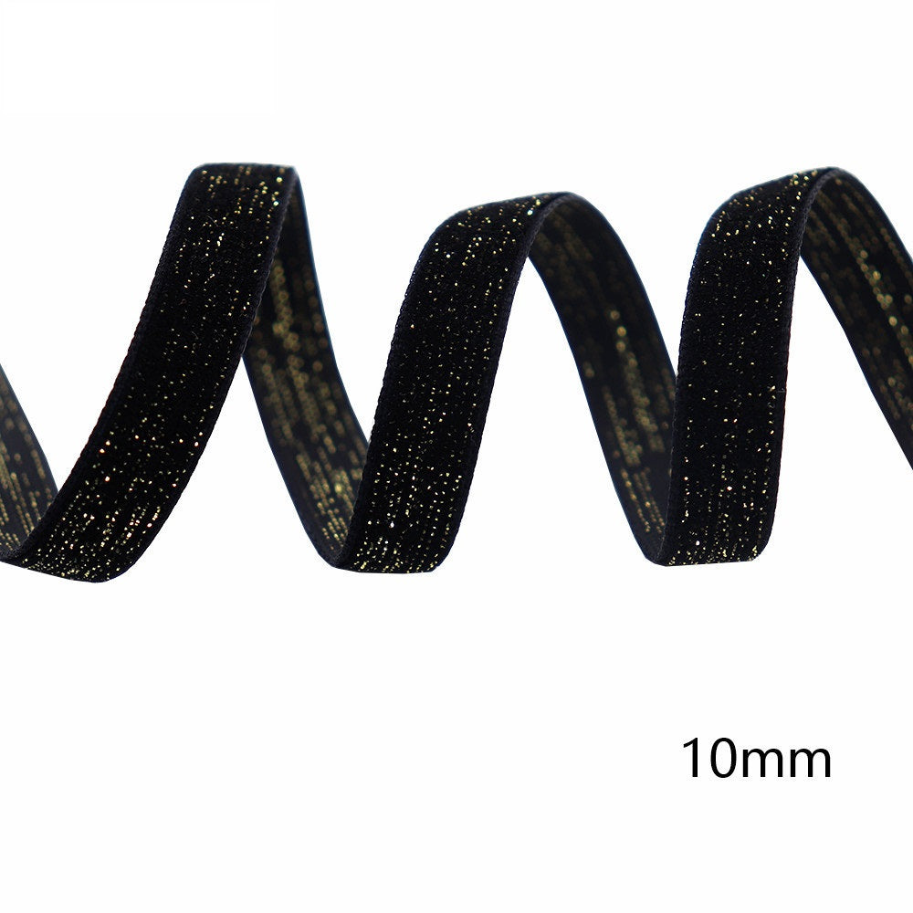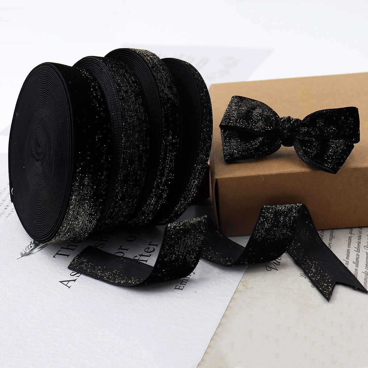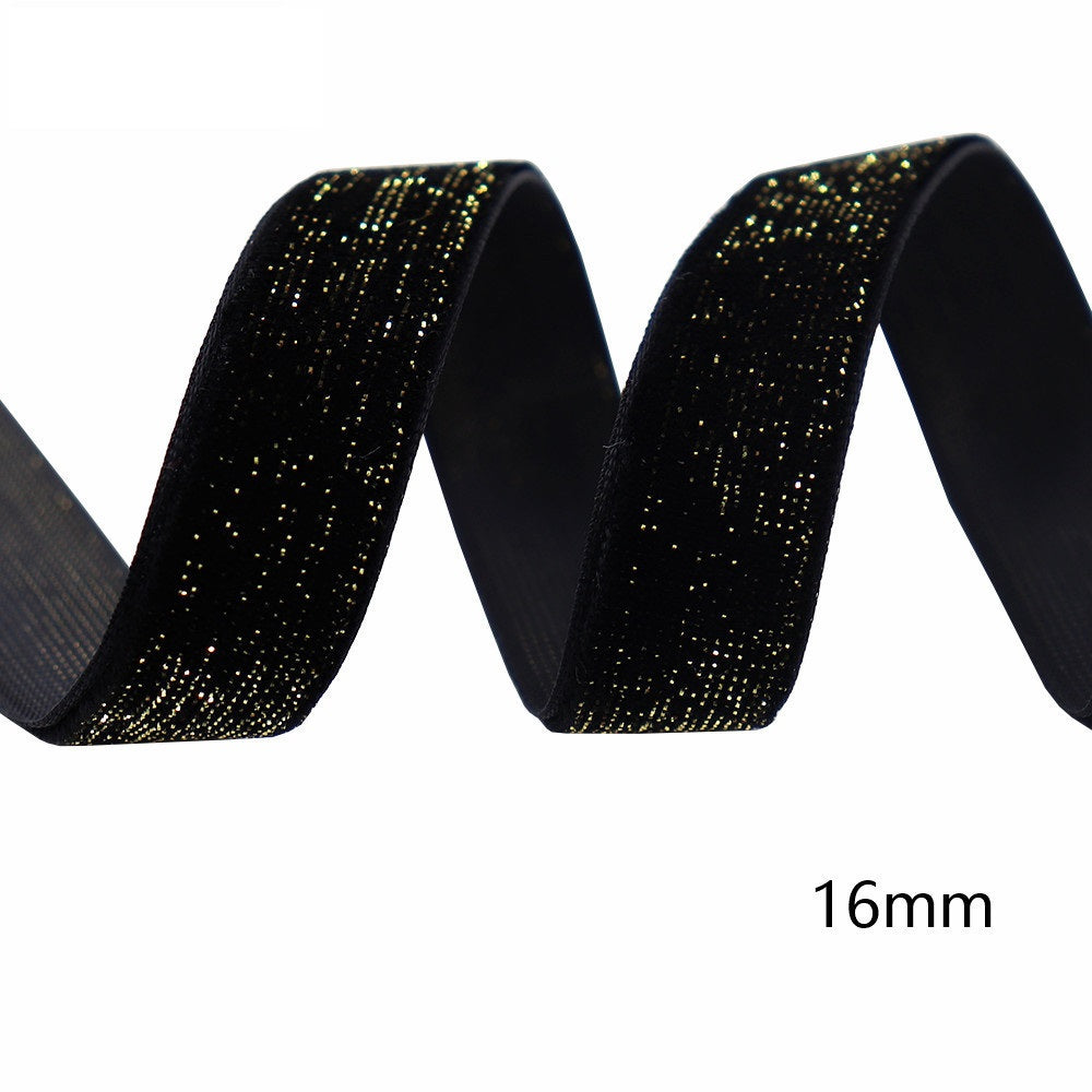 Κορδέλα από μαύρο βελούδο 10/16/19/25/38mm με χρυσή άκρη, σετ 5 τεμαχίων