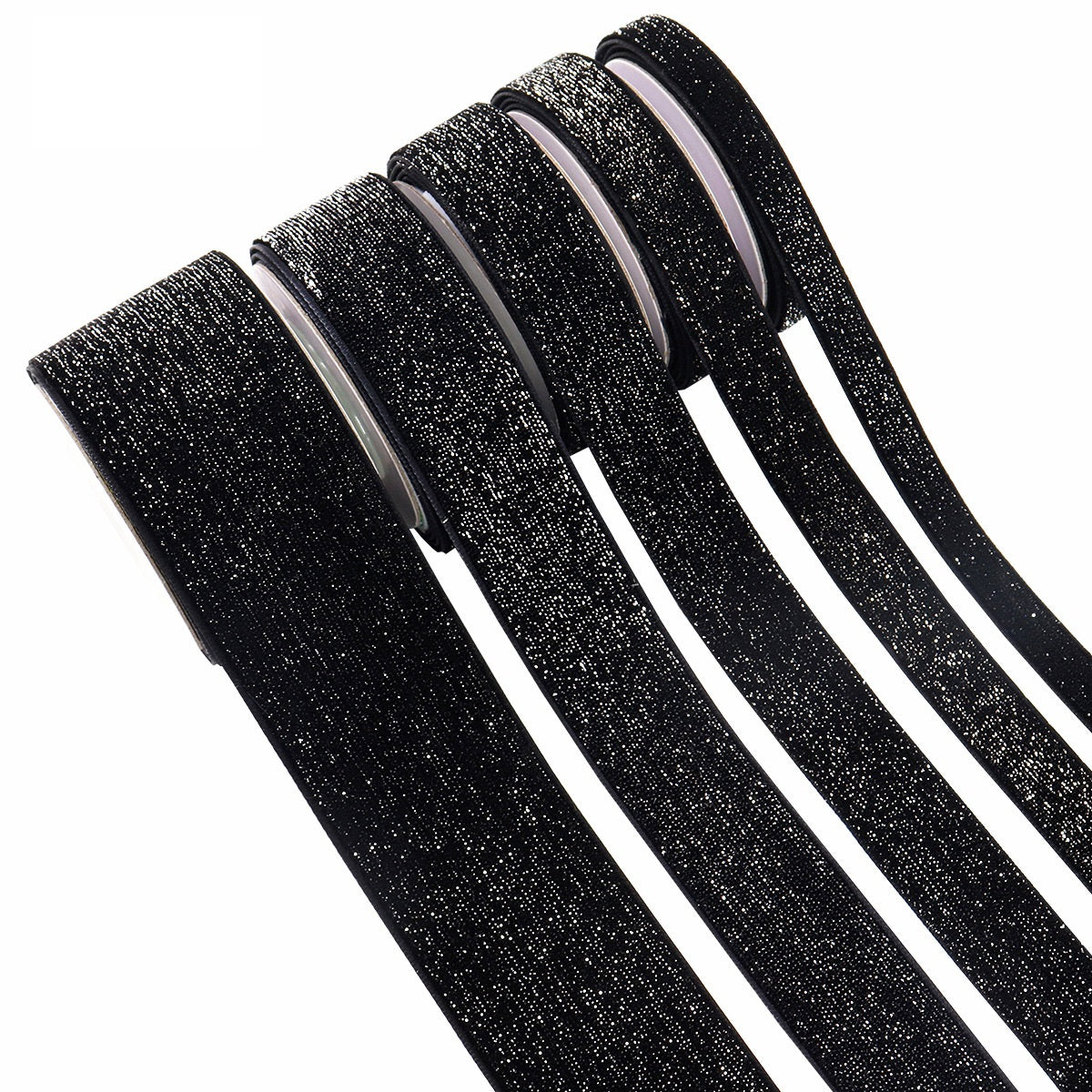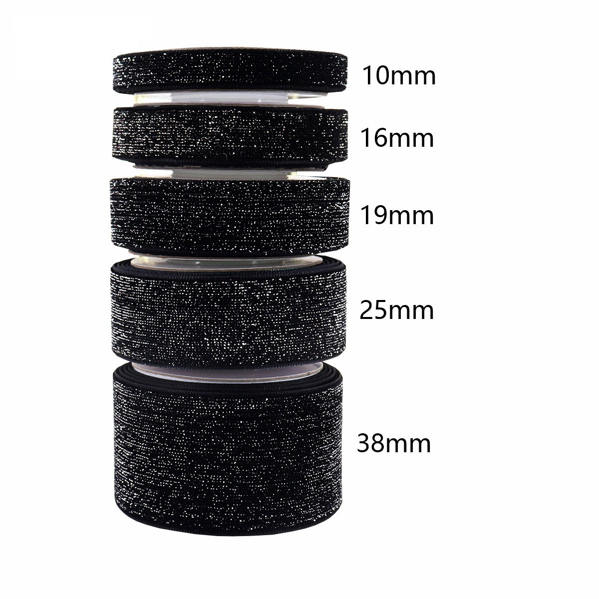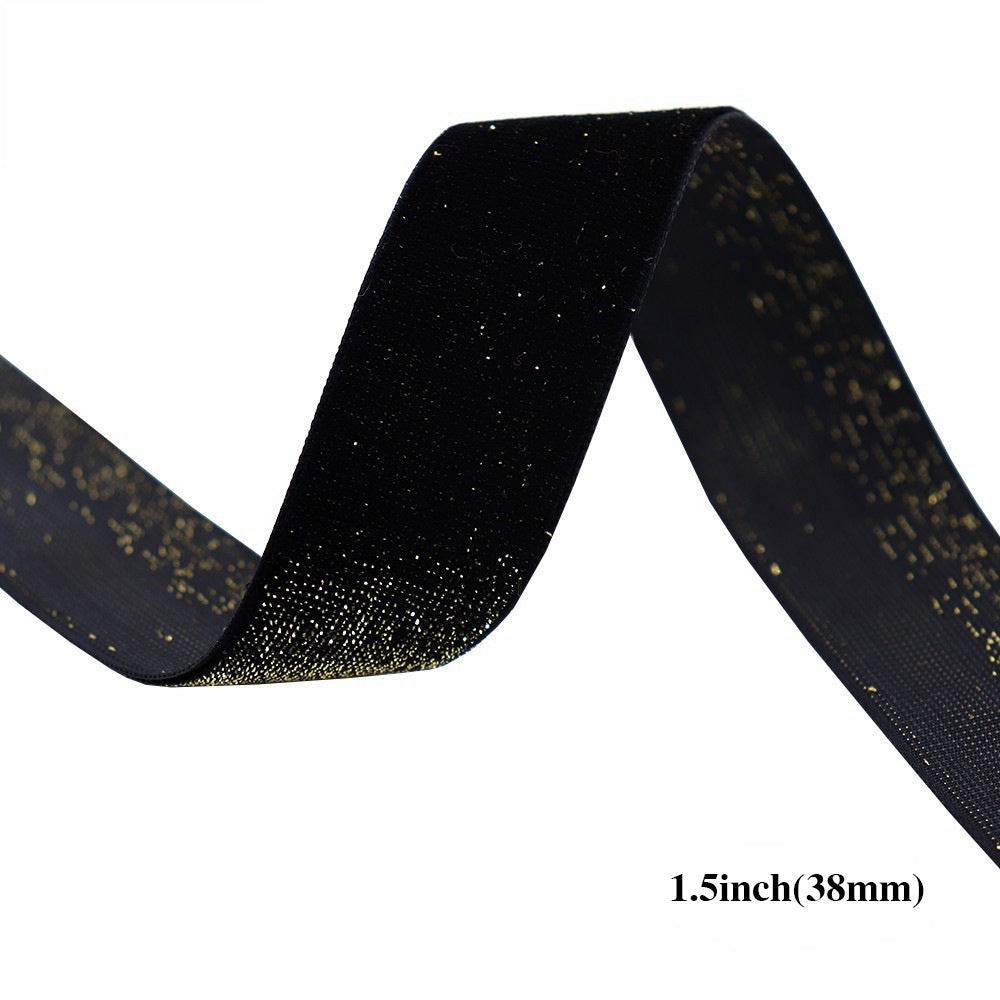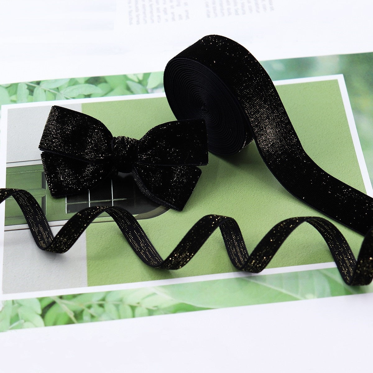 Κορδέλα από μαύρο βελούδο 10/16/19/25/38mm με χρυσή άκρη, σετ 5 τεμαχίων