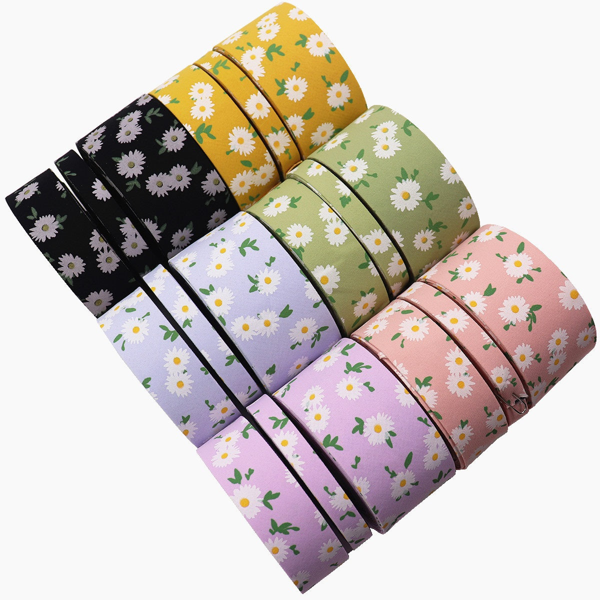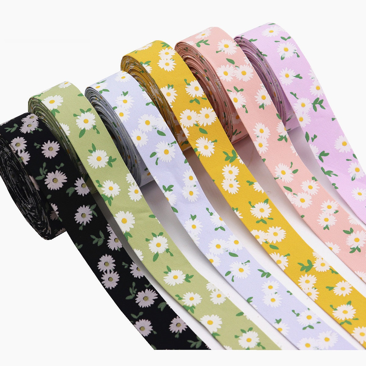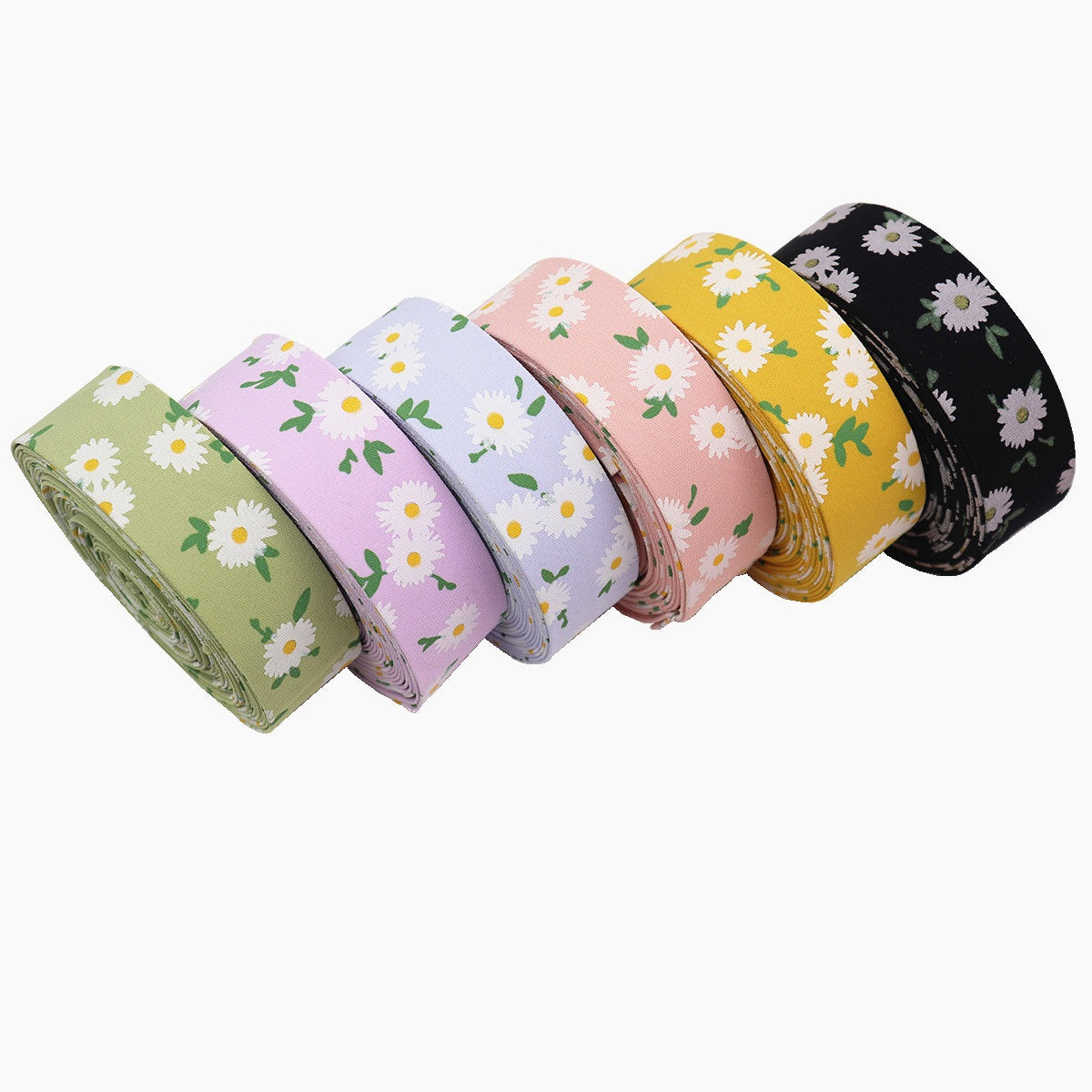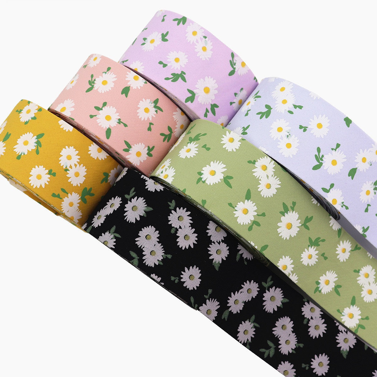 Σετ κορδέλες υφάσματος με εκτύπωση λουλουδιών 10/25/38mm σε 6 χρώματα