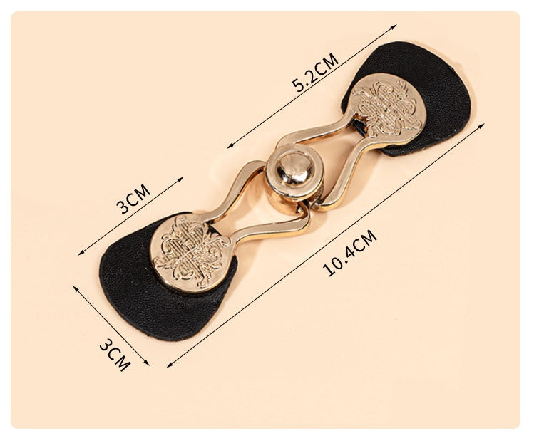 Αυτά τα κουμπιά toggle 10.4cm είναι μια κομψή και πρακτική προσθήκη σε κάθε ρούχο ή αξεσουάρ. Κατασκευασμένα από υψηλής ποιότητας μαύρο δέρμα, προσφέρουν μια κομψή και εκλεπτυσμένη εμφάνιση. Το δέρμα έχει επιλεγεί προσεκτικά για την ανθεκτικότητά του και την ομαλή υφή, εξασφαλίζοντας μακροχρόνια χρήση. Ο μοναδικός σχεδιασμός για ράψιμο επιτρέπει εύκολη προσάρτηση σε διάφορα υφάσματα, καθιστώντας τα κατάλληλα για παλτά, μπουφάν, τσάντες και άλλα. Το pièce de résistance είναι η μεταλλική πόρπη, που όχι μόνο παρέχει ασφαλές κλείσιμο αλλά προσθέτει και μια πινελιά μοντέρνας κομψότητας. Η πόρπη είναι κατασκευασμένη με ακρίβεια, διαθέτοντας γυαλιστερό φινίρισμα που τραβάει το βλέμμα. Με αυτά τα κουμπιά, μπορείτε να αναβαθμίσετε εύκολα την εμφάνιση των δημιουργιών σας, προσθέτοντας μια εκλεπτυσμένη λεπτομέρεια που τα ξεχωρίζει. Είτε είστε λάτρης του DIY είτε επαγγελματίας σχεδιαστής, αυτά τα κουμπιά toggle σίγουρα θα καλύψουν τις αισθητικές και λειτουργικές σας ανάγκες.
