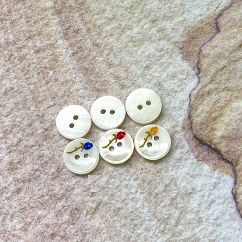 Αυτά τα κουμπιά από κοχύλι 11,5mm είναι μια κομψή και εντυπωσιακή επιλογή. Ο στρογγυλός σχεδιασμός με 2 τρύπες σε σχήμα μπολ προσφέρει μια μοναδική εμφάνιση και εύκολη τοποθέτηση. Διακοσμημένα με μοτίβα κόκκινου, κίτρινου και μπλε τριαντάφυλλου, προσθέτουν μια πινελιά κομψότητας και χρώματος σε πουκάμισα, ζακέτες, πουλόβερ και πλεκτές μανσέτες. Το υλικό από κοχύλι έχει φυσική λάμψη και ανθεκτικότητα. Αυτά τα κουμπιά μπορούν να βελτιώσουν τη συνολική εμφάνιση του ενδύματος, καθιστώντας το πιο μοντέρνο και εκλεπτυσμένο. Είτε για επίσημη είτε για καθημερινή χρήση, σίγουρα θα τραβήξουν την προσοχή και θα κάνουν εντύπωση.