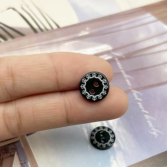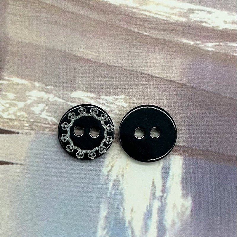 11.5mm Μαύρα Κουμπιά Πουκάμισου με Δύο Τρύπες και Βαρελάκι με Χαραγμένα Βίντατζ Τοτέμ 30 τεμ.